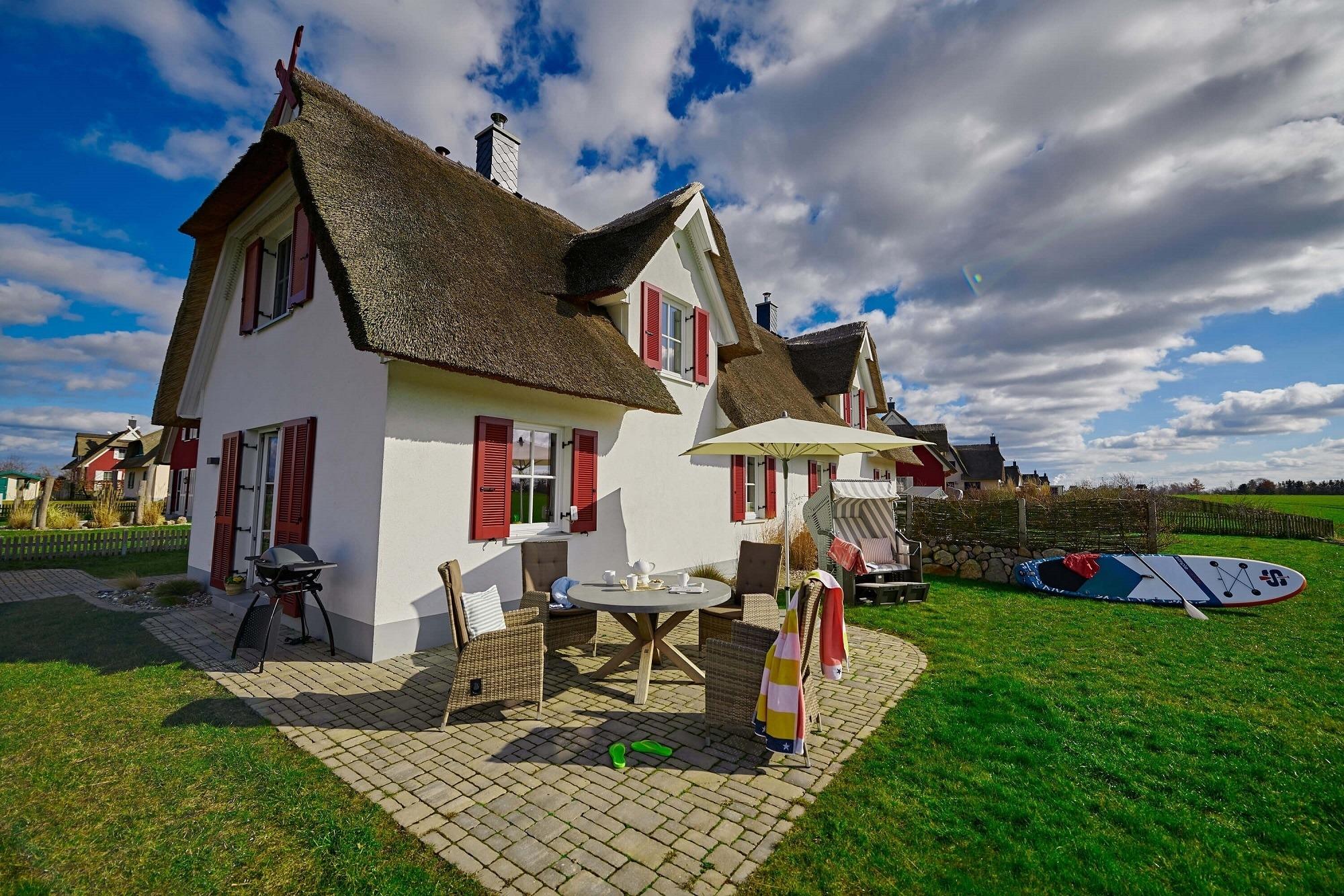 Im umzäunten Garten zur Südseite können Sie es sich auf den Gartenmöbel bequem machen und Ihre Blicke über die Wiesen und Felder schweifen lassen.