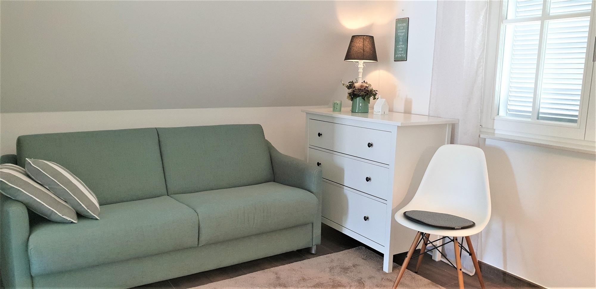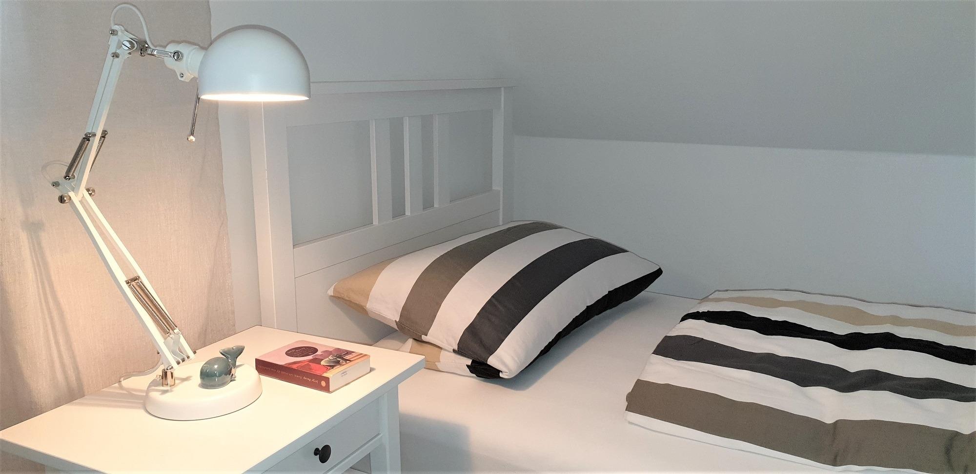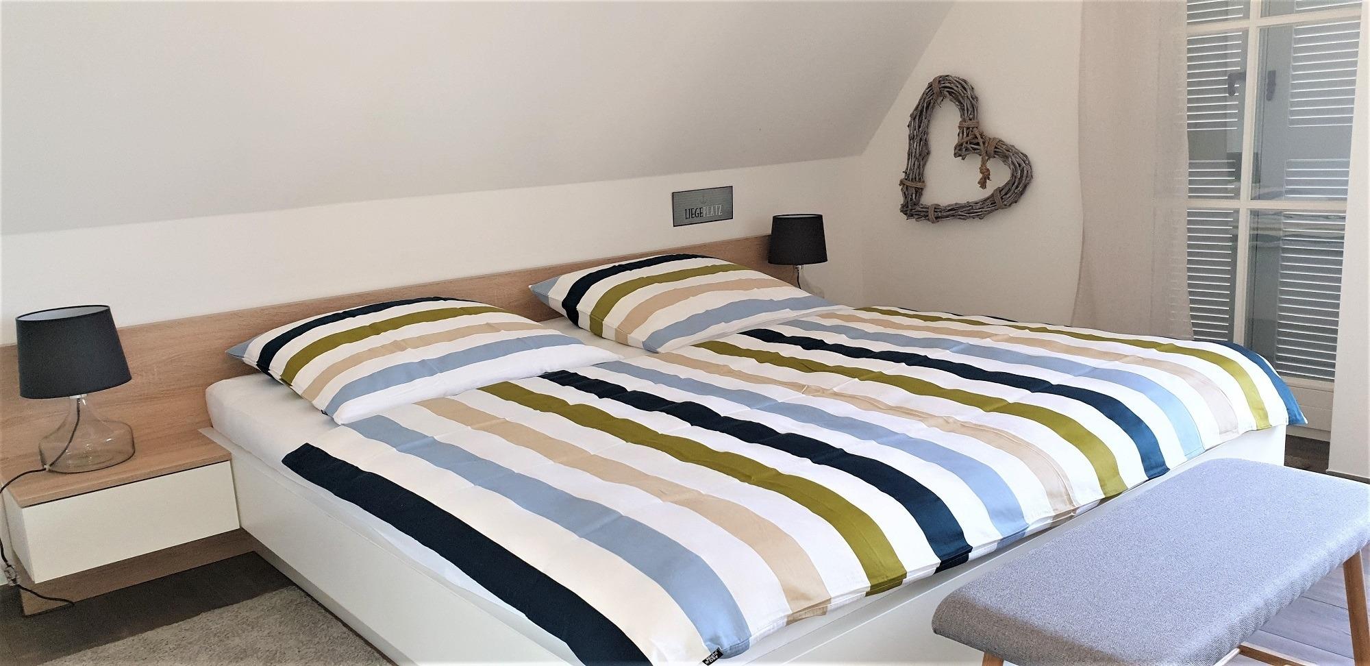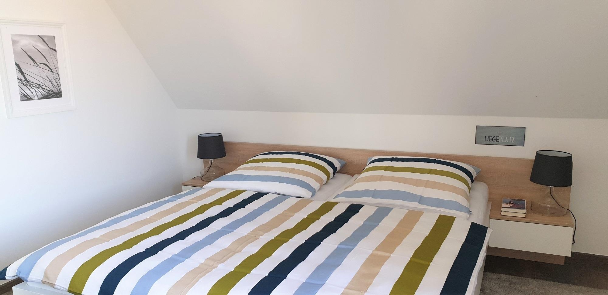 Unser Haus verfügt über zwei Schlafzimmer und einem großen Bad mir Fledermausgaube und Tageslicht im Obergeschoss. Eines der Zimmer hat ein großes gemütliches Doppelbett, genügend Stauraum für Kleidung und persönliche Dinge, sowie einen Balkon mit Blick auf die Ostsee. Hier kann man wunderschöne Sonnenuntergänge genießen und den Tag entspannt ausklingen lassen. Wer von den Sonnenstrahlen am Morgen geweckt werden möchte ist im zweiten Schlafzimmer bestens aufgehoben. Hier befinden sich zwei Einzelbetten und zusätzlich eine ausziehbare Schlafcouch für zwei Personen. Familien mit bis zu vier Kindern können es sich hier gemütlich machen.