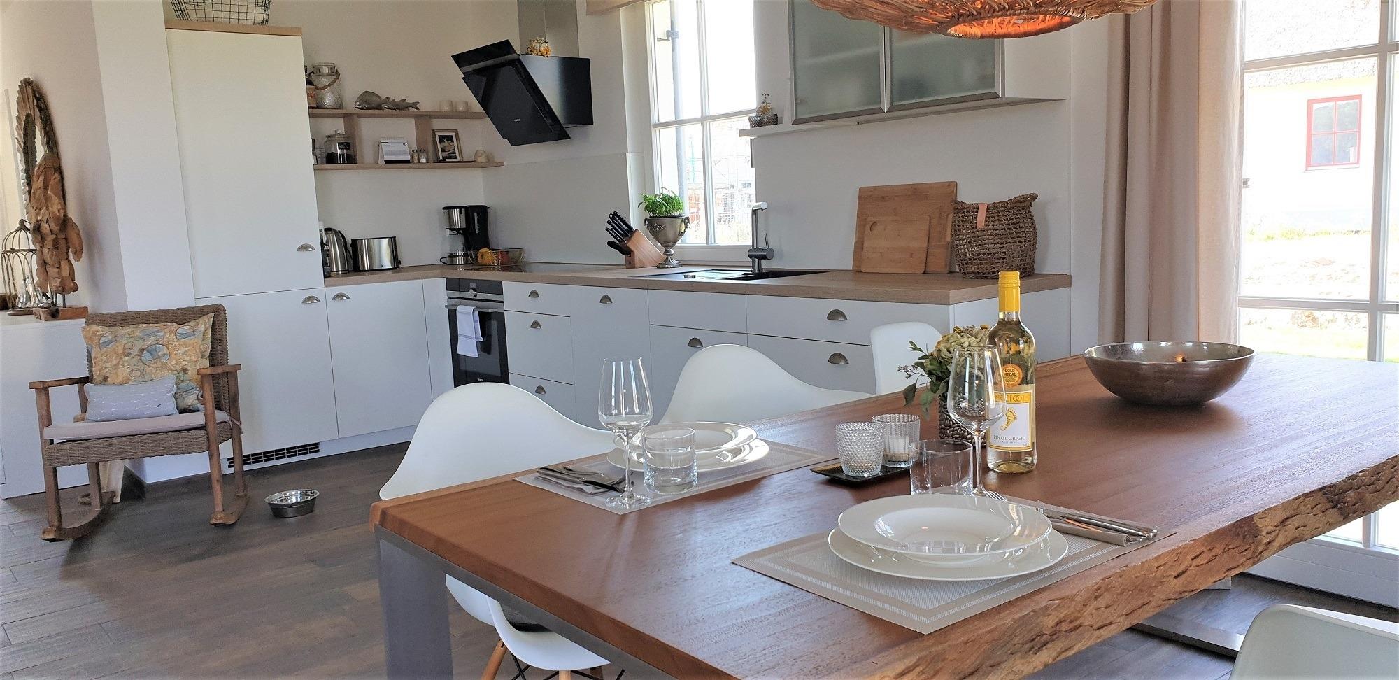 Selbstverständlich haben wir auch WLAN, eine voll ausgestattete Küche mit Backofen und Induktionskochfeld, diverse Küchengeräte und einen großen Kühlschrank mit Gefrierfach. Vor dem Haus gibt es Stellplätze für zwei PKW.