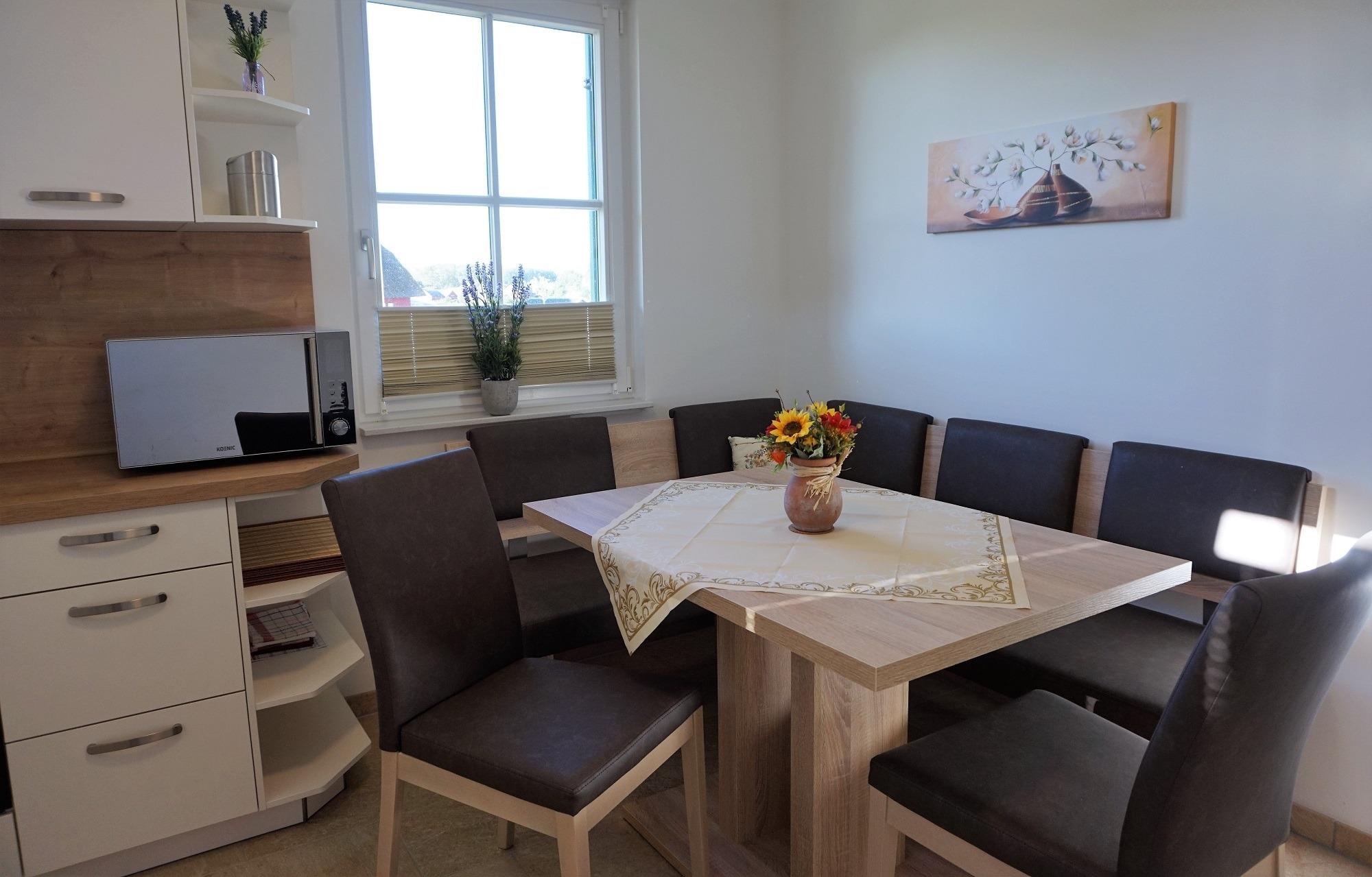 Vom Garten aus haben Sie einen wunderbaren Blick auf die Ostseeküste. Ein Grillplatz mit Sitzgelegenheit und der Strandkorb sind zu dieser Richtung ausgerichtet. Im Ferienhaus besticht die Einrichtung aus Vollholzmöbel. Der Wohnbereich ist hell eingerichtet und bietet bis zu sechs Personen Platz zum Essen und gemütlichen Beisammensein vor dem Kamin. Die Küche ist separat und ist sehr gut mit Mikrowelle/Grill, Ceran-Kochfeld, Backofen, Geschirrspüler u.v.m. ausgestattet. Eine Sitzbank und Tisch bieten dort einen weiteren schönen Essbereich. Im Hauswirtschaftsraum steht eine Wasch-Trocknermaschine, Bügeleisen, Bügelbrett und einige Putzutensilien zur Verfügung. Das Duschbad im Erdgeschoss verfügt über eine Wellnessdusche und einer Sauna sowie WC und Waschbecken.