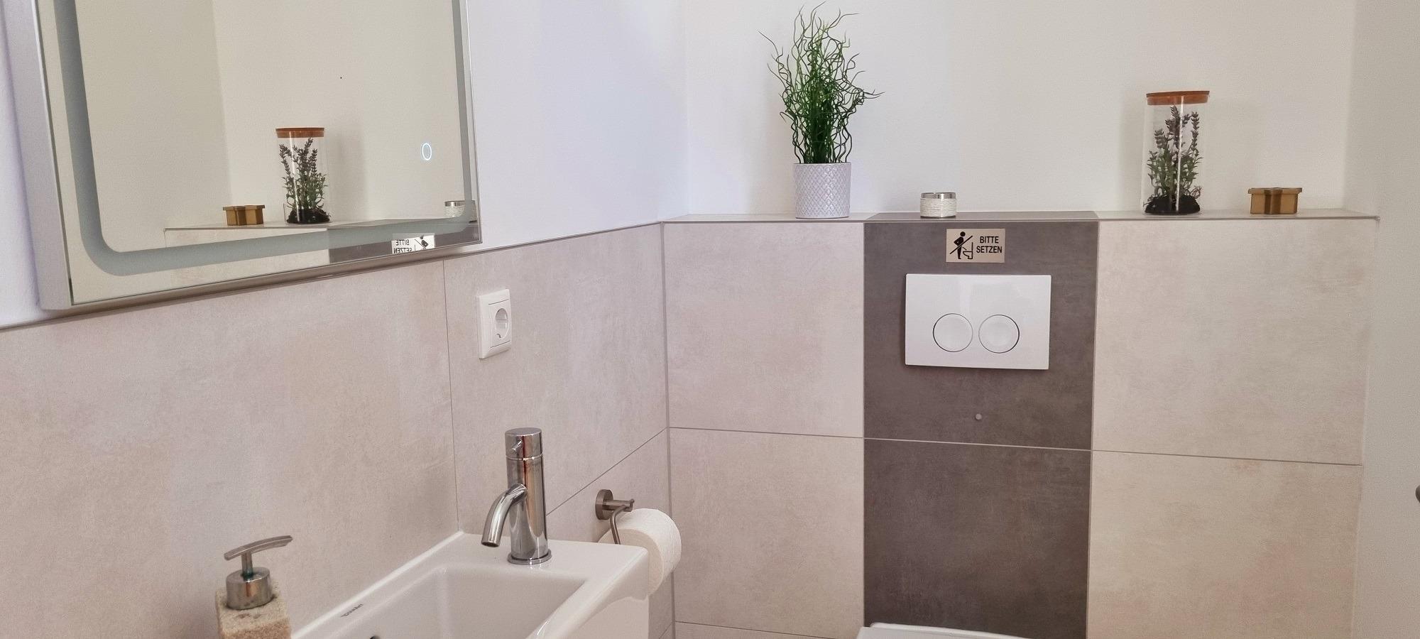 Im Untergeschoß befinden sich eine Sauna mit Dusche für die kühleren Wellness Tage, ein Gäste WC und ein Waschraum.