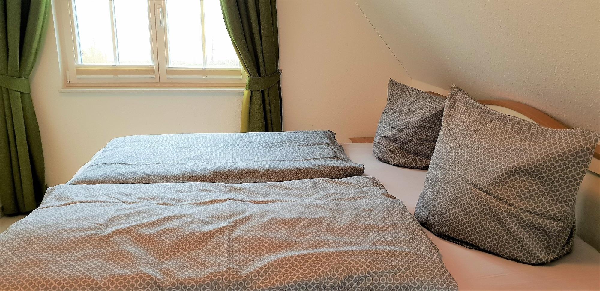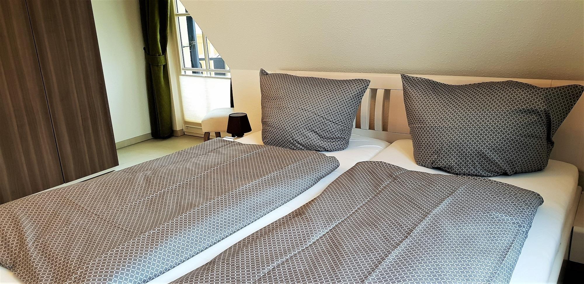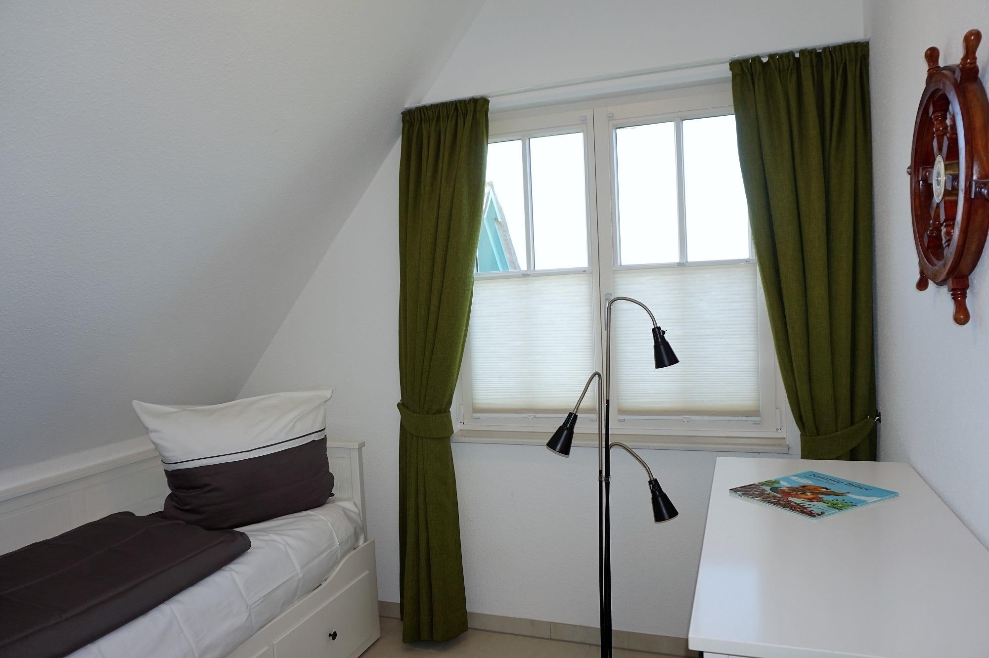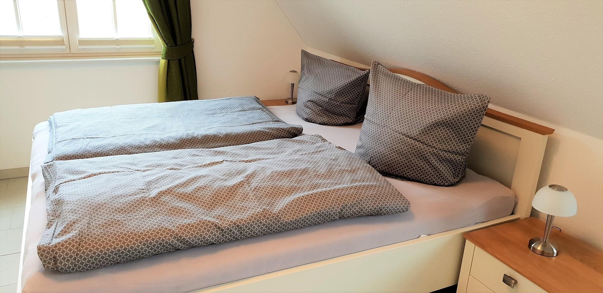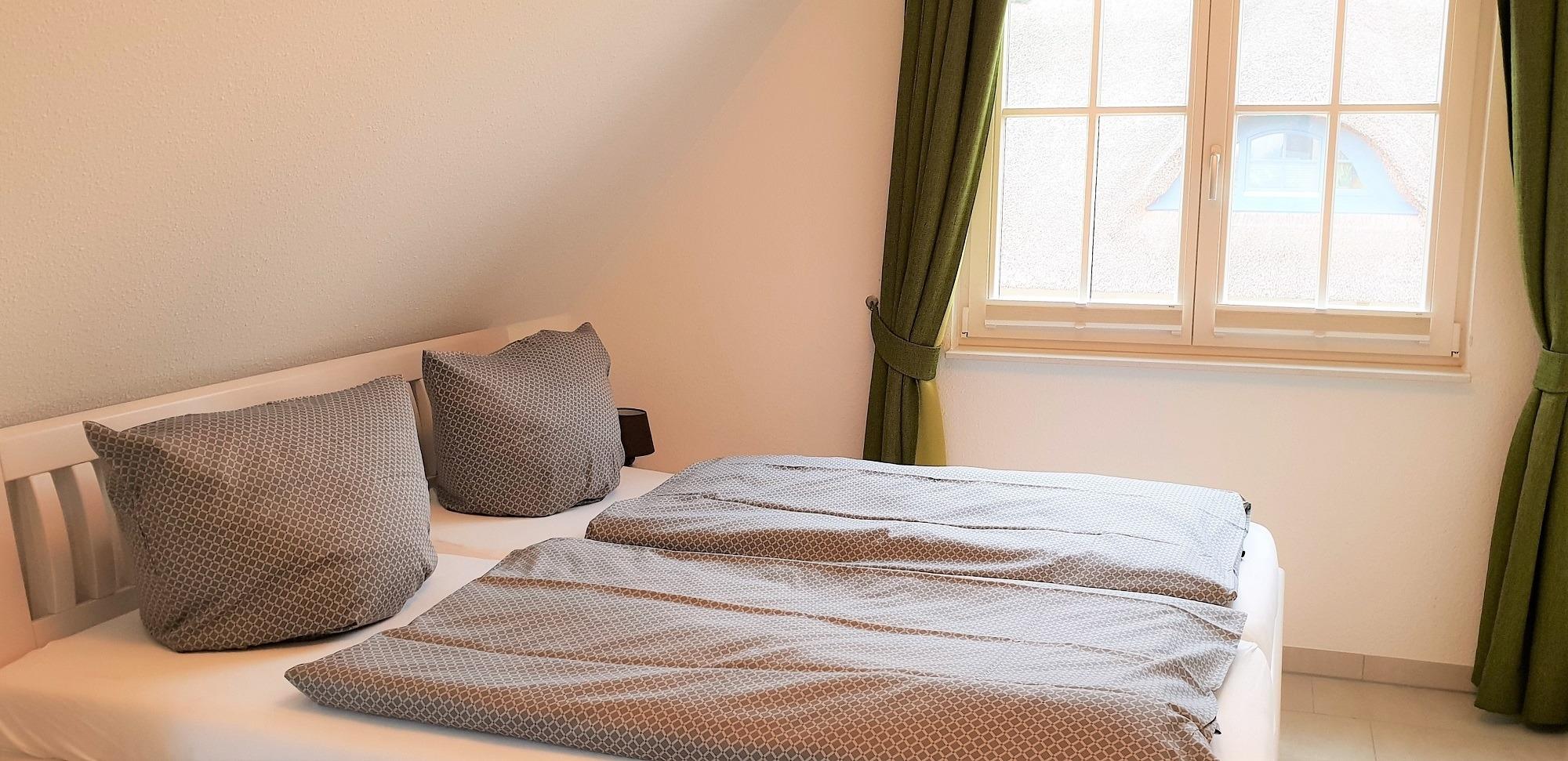 Ihr Urlaub kann direkt beginnen - frisch bezogene Bettwäsche und Handtücher liegen bereit. Im Obergeschoss empfangen Sie drei Schlafzimmer. Zwei Schlafzimmer sind jeweils mit einem Doppelbett und Kleiderschrank ausgestattet. Sie bieten direkten Zugang zum Balkon der zur Nord (Seeseite) ausgerichtet ist. Hier können Sie Ihren Kaffee am Morgen oder zu den Abendstunden den Sonnenuntergang und den Ostseeblick über die Wismarbucht beobachten. Im dritten Schlafzimmer steht ein Einzelbett mit Ausziehfunktion für 2 Personen (160x200).