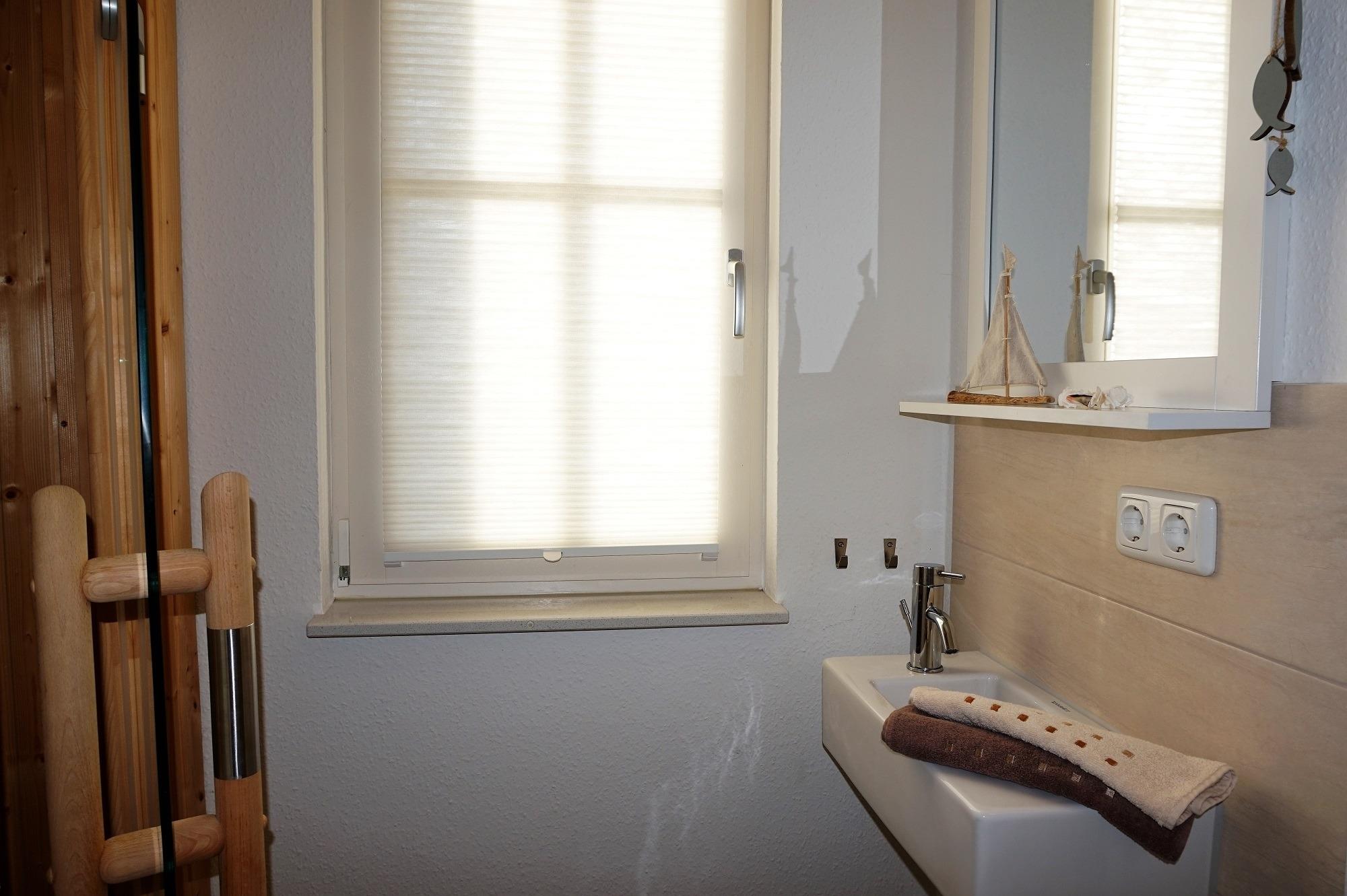 Im Erdgeschoss befindet sich des weiteren ein Duschbad mit Sauna und der Hauswirtschaftsraum mit Waschmaschine und Trockner.