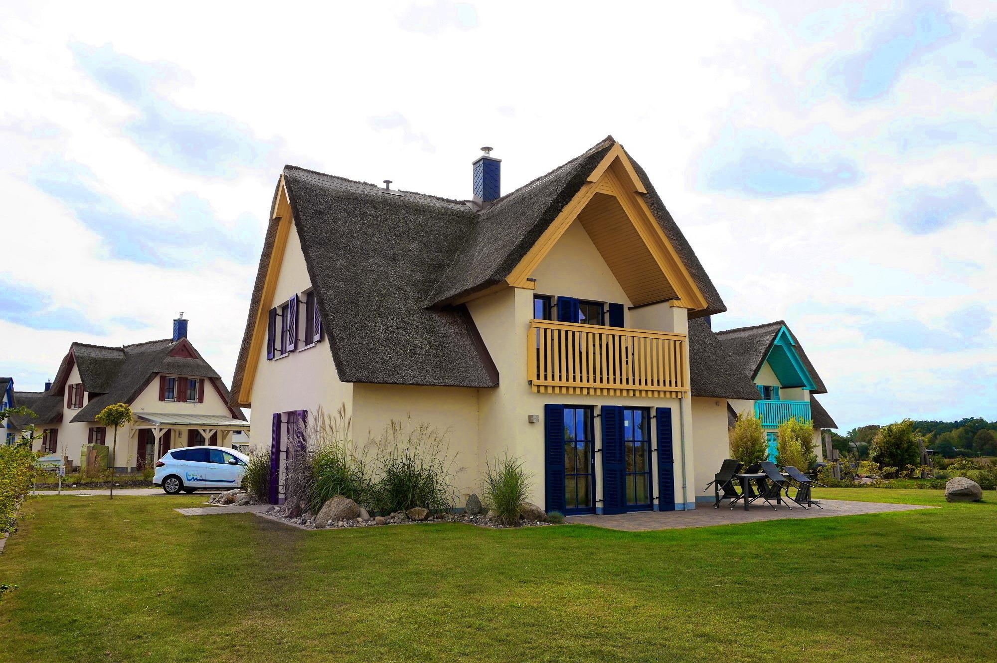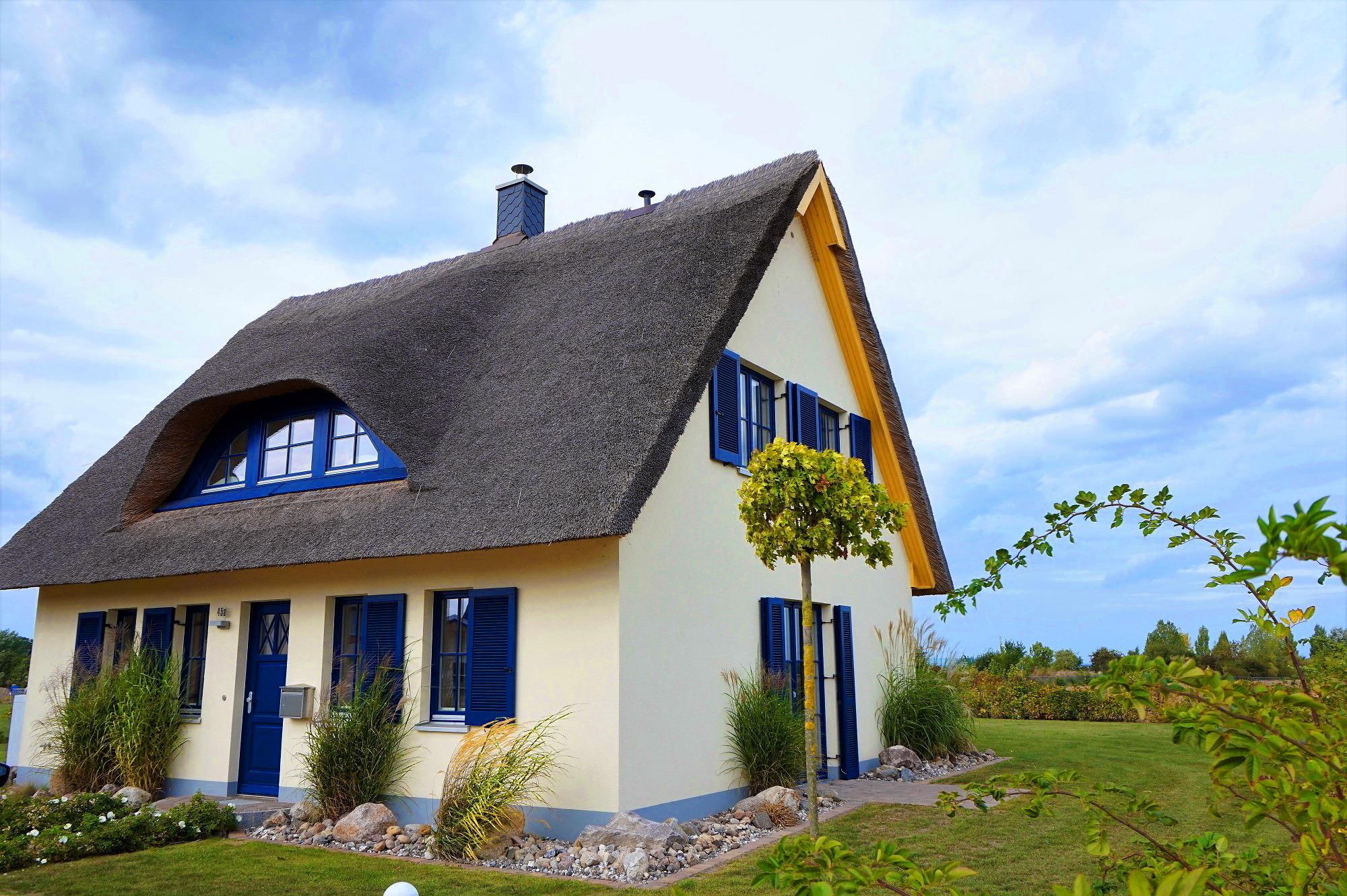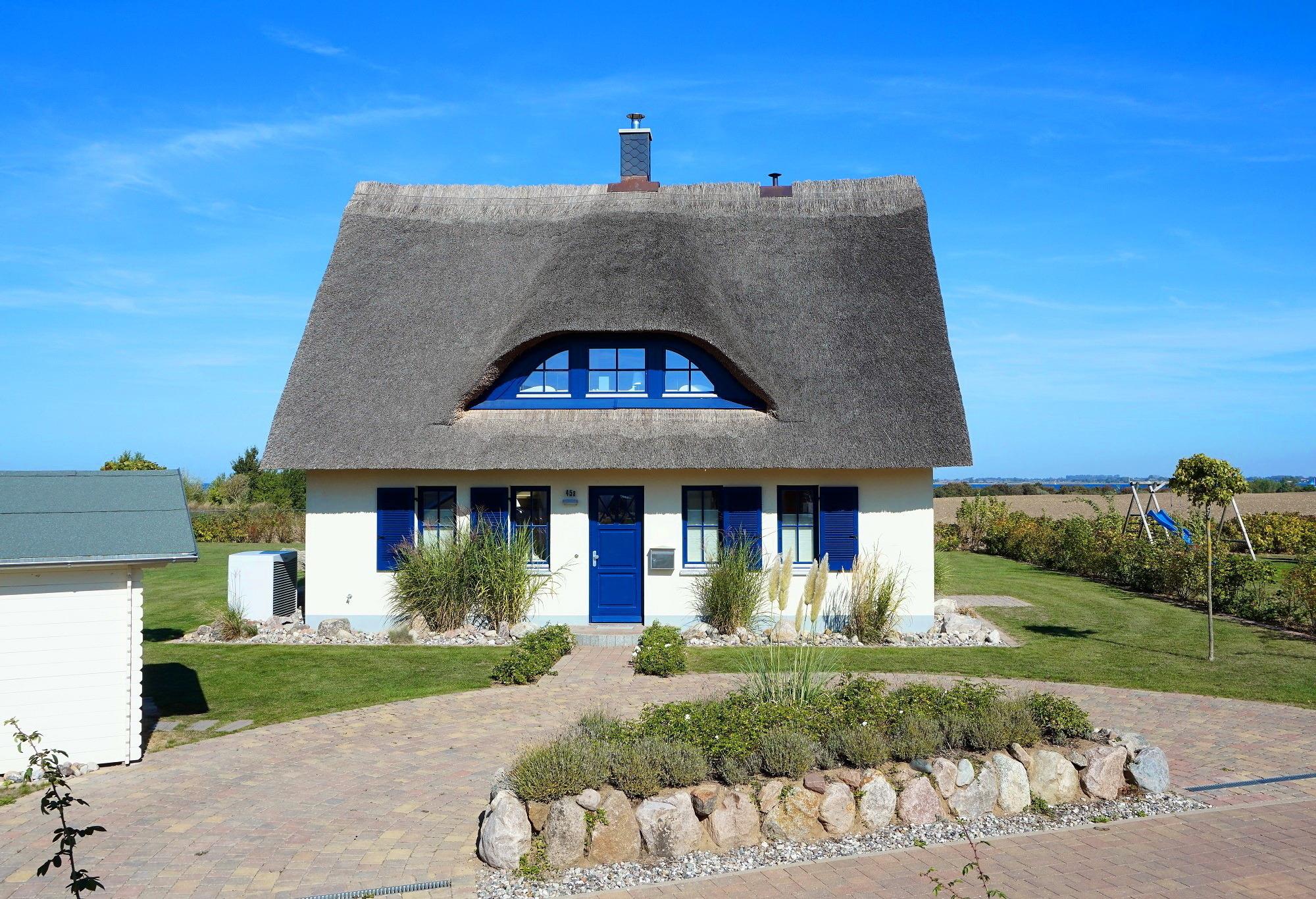 ?????Sterne unter Reet! Dieses gemütliche und hochwertige Ferienhaus mit einer Wohnfläche von 124 m² (134 m² Nutzfläche) unter Reet nur ca. 500 m vom Strand mit großem Grundstück und Meerblick erstreckt sich über zwei Wohnebenen und überzeugt jeden Ostseeliebhaber.