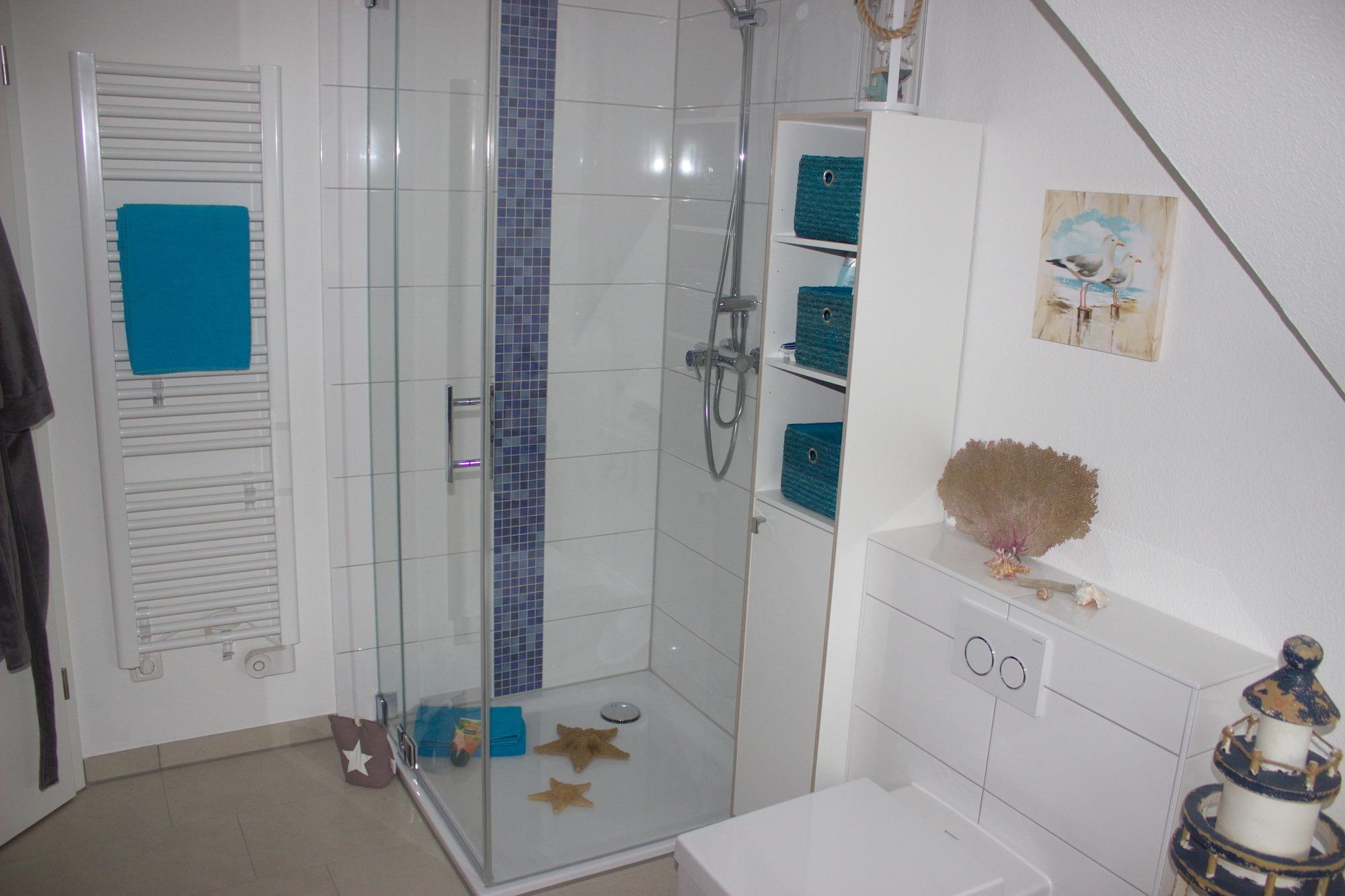Die Wellnessdusche mit Sauna im Erdgeschoss und das Gäste-WC mit Tageslicht sowie der Hauswirtschaftsraum mit Waschmaschine runden das Erdgeschoss ab.