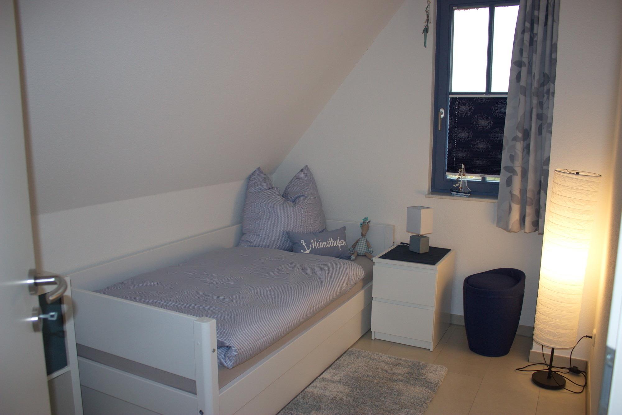 Im ersten Schlafzimmer mit Seeblick - steht ein Doppelbett und Kleiderschrank. Hier haben Sie platz für das Kinderreisebett. Die anderen zwei Schlafzimmer sind identisch mit einem ausziehbaren Bett (Einzelbett mit Ausziehfunktion) eingerichtet.