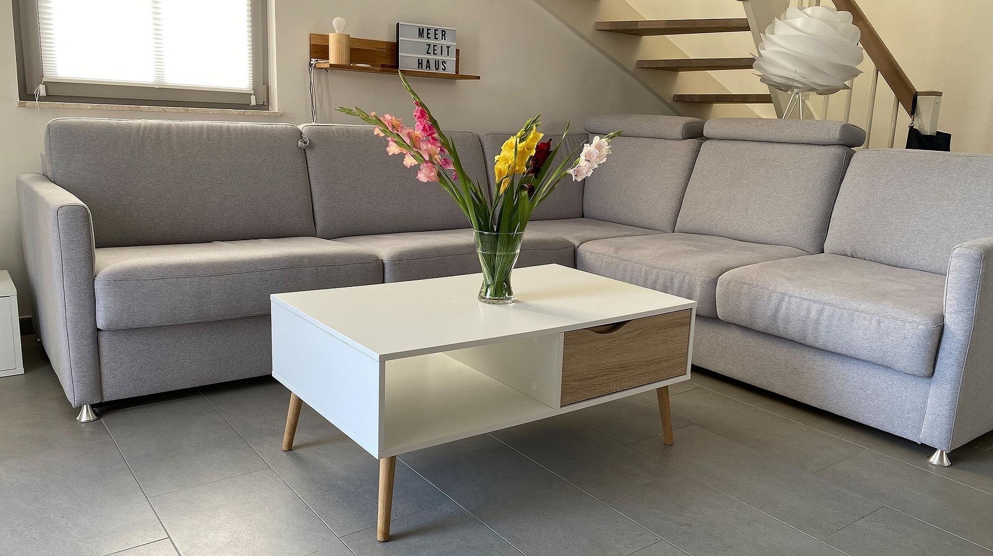 Der massive Holztisch sowie die großzügige Sofalandschaft bieten Platz für 6 Personen. Flach-TV, DVD-Player und Stereoanlage bieten Unterhaltung, zudem stehen einige Bücher, Reiseführer, DVDs und Spiele zur Verfügung. Im Wohnbereich steht der Kaminofen, der wohlige Wärme spendet. Ein Starterpaket mit Kaminholz ist vorhanden.