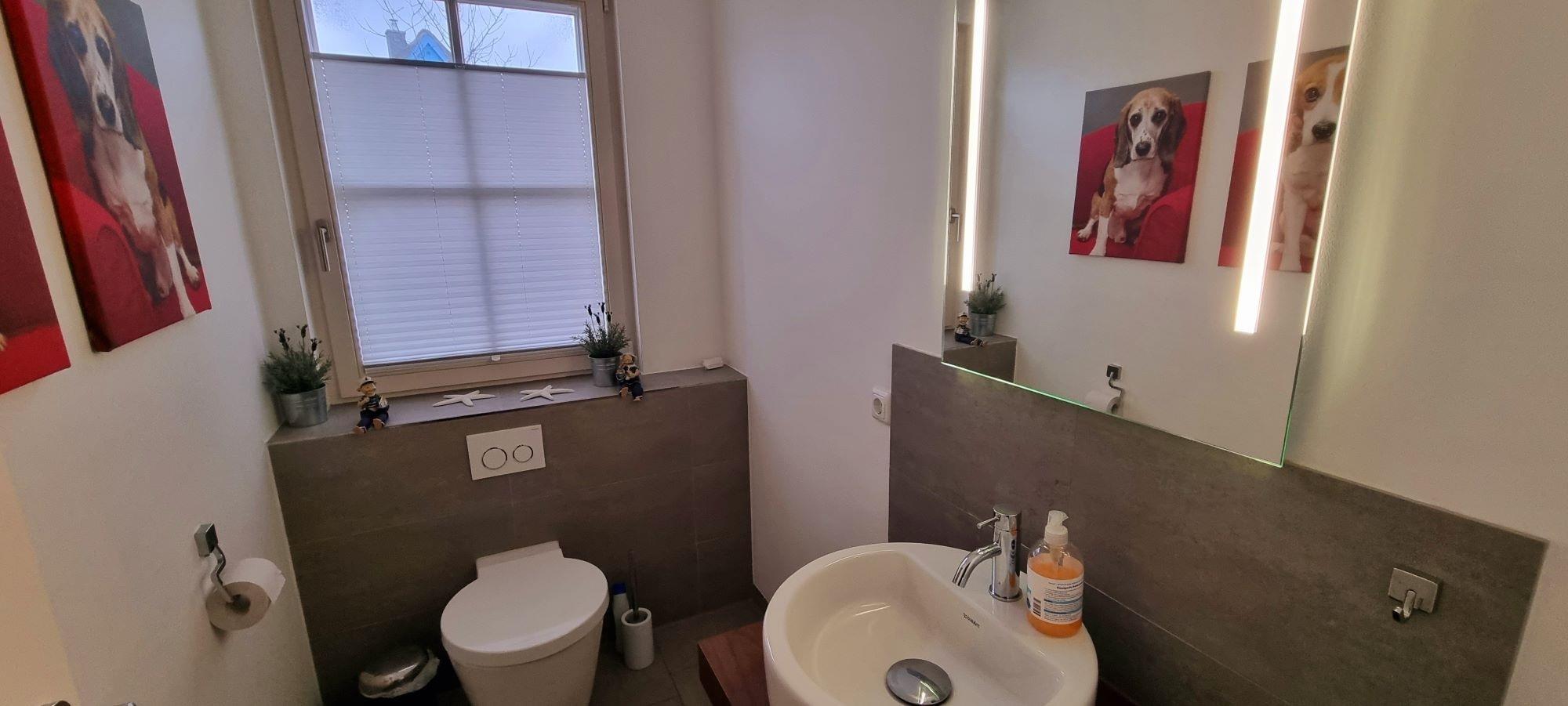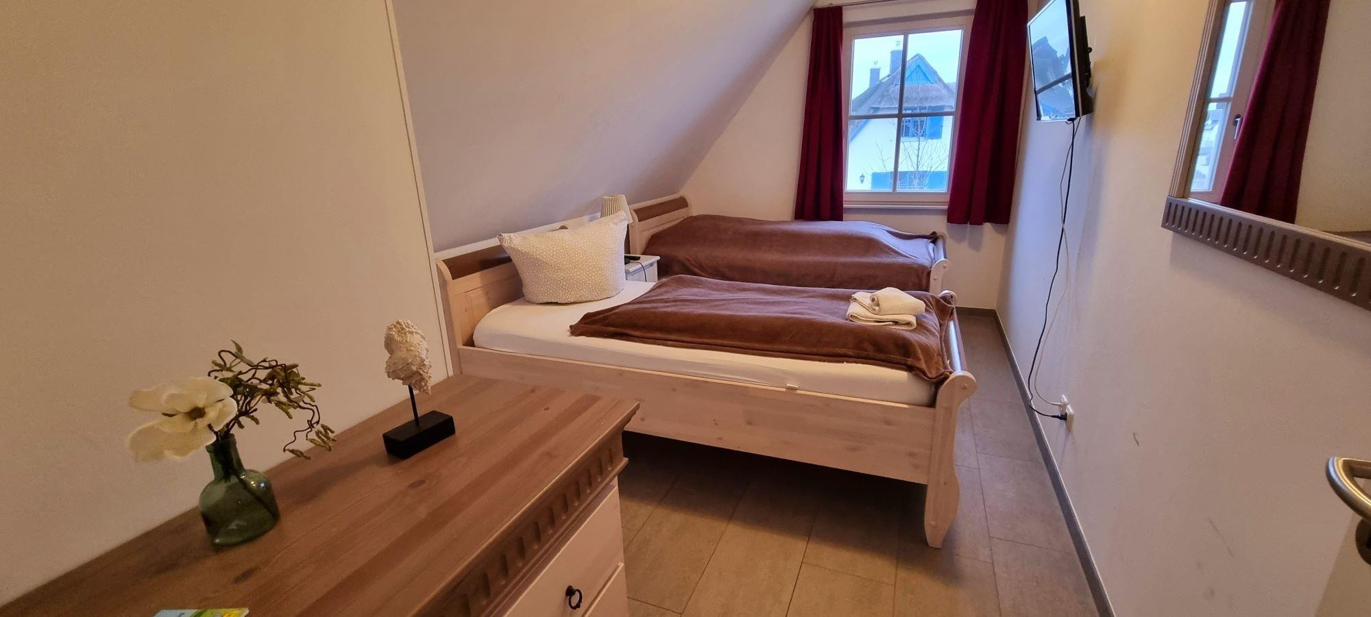 Zwei Schlafzimmer sind mit je 2 Einzelbetten und einer Kommode eingerichtet - ideal für Ihre Kinder! Für die Kleinen Gäste stehen Kinderhochstuhl, Kinderreisebett und Treppenschutzgitter bereit! Eine Kleinkindausstattung für das Badezimmer ist vorhanden. Die anderen zwei Schlafzimmer haben zusätzlich einen TV und sind mit je einem Doppelbett (160x200) und einer Kommode ausgestattet. Das Vollbad im Obergeschoss besticht durch die frei stehende Wanne und der bodentiefen Dusche mit Echtglasabtrennung. Dort finden Sie ebenfalls einen Handtuchheizung und zwei Waschbecken - so kann der Tag starten. Der Außenbereich ist komplett eingezäunt und die Terrasse ist zur Westseite ausgerichtet. Hier können Sie sonnige Stunden genießen oder Grillabende mit Ihrer Familie oder Freunden einplanen. Ein fest stehender Grill steht bereit. Genießen Sie die Sonnenstunden auf den Gartenliegen oder im hauseigenen Strandkorb. Vor dem Haus sind zwei Parkplätze. Mitgebrachte Fahrräder können Sie im hauseigenen Abstellschuppen einschließen.
