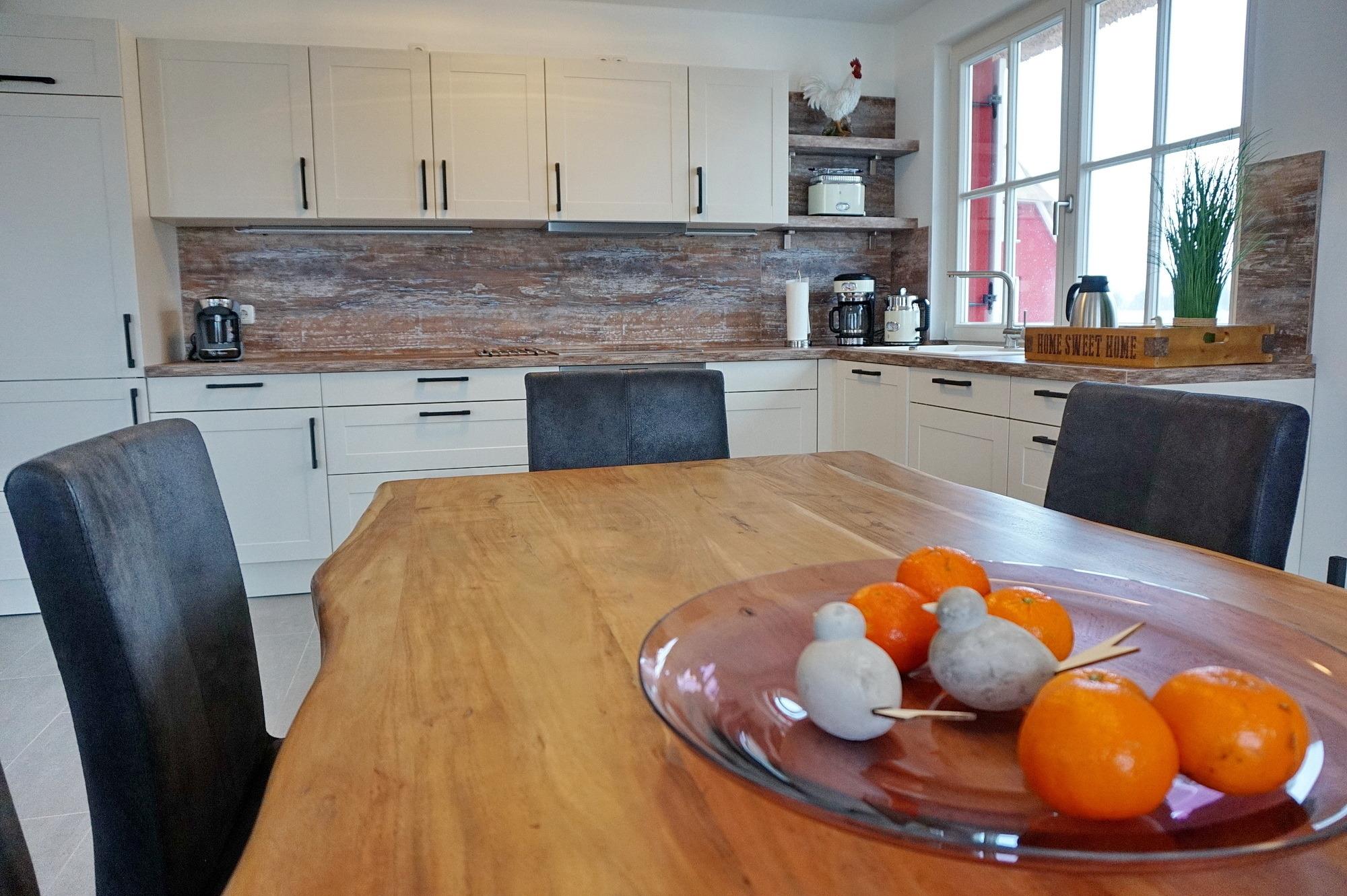 Im November 2017 erhielt es vom DTV eine ****Sterne Klassifizierung. Zum Naturstrand (Hundestrand) sind es nur 600 m. Der zweite Strandabschnitt ist ebenfalls gut zu Fuß zu erreichen und bietet mit einem Cafe, Minigolfanlage, Beachvolleyball und einem großen Spielplatz am Strand viel Vergnügen für Groß und Klein. Im großem Wohn- Essbereich sorgt ein Kamin für wohlige Wärme an kalten Tagen und Sie können es sich auf der Couch mit einem der zahlreichen Bücher oder Spiele gemütlich machen. Die Küchenzeile ist mit modernen Küchengeräten ausgestattet. Der große Esstisch bietet Platz für die ganze Familie. Auf Wunsch können Sie einen Hochstuhl dazu bestellen. Für die Vierbeiner stehen Fressnapf und zwei Hundekörbe zur Verfügung. Es liegen spezielle Decken bereit um die Einrichtung zu schonen. Entspannung finden Sie im großen Duschbad mit Sauna. In der mind. 4 Personen ausreichend Platz finden. Ein Aufguss steht bereit. Die Dusche ist bodengleich und verfügt über eine Wellnessbestrahlung. Das Gäste-WC und der Hauswirtschaftsraum mit Waschmaschine und Trockner runden das Erdgeschoss ab. Im Obergeschoss befinden sich die vier Schlafzimmer. Sie sind mit Vollholzmöbel hell eingerichtet.