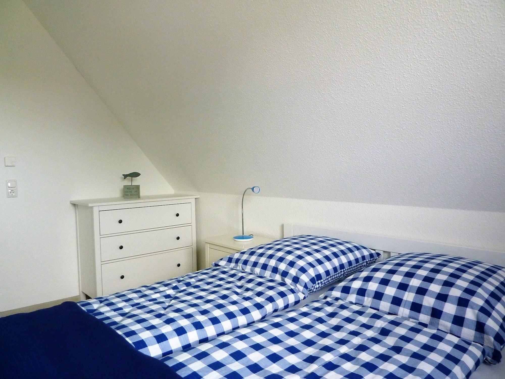 In einem Schlafzimmer befindet sich ein Doppelbett (160x200), zwei Nachttische und eine Kommode. Ein Kinderreisebett findet hier ebenfalls Platz und ist im Haus inklusive Matratze, Bettdecke und Kopfkissen vorhanden. Das Schlafzimmer mit Seeblick ist mit zwei einzelnen Betten (90x200), zwei Nachttischen und einem Kleiderschrank ausgestattet. Das moderne Vollbad sorgt für ein behagliches Wohngefühl. Es ist mit hochwertigen Sanitärelementen (eine Badewanne und einer Dusche) ausgestattet. Ein Fön ist ebenfalls vorhanden. Hier finden Sie auch die finnische Sauna, deren Benutzung im Preis enthalten ist. Auf der möblierten Terrasse ist auch ein Strandkorb aufgestellt. Der große Garten lädt zum Entspannen und Spielen ein.