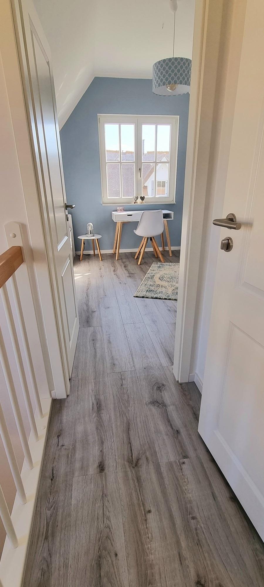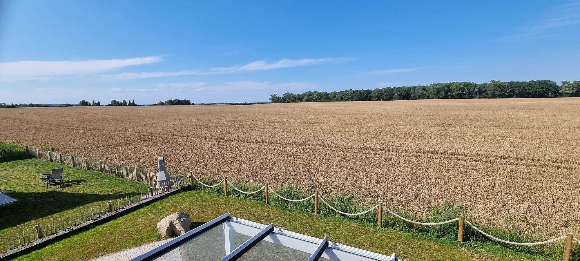 Im Erdgeschoss empfängt Sie die offen und hell gestaltete Wohnküche mit einer Küchenzeile, dem Essbereich und einer gemütlichen Sofaecke mit Kaminofen. Hier kann man gemeinsam den Tag beginnen und den Abend genießen. Im Wohnzimmer befinden sich 2 Türen, die Sie in den Garten mit Blick auf das freie Feld vor Ihnen einladen. Auf der Terrasse sitzen Sie unter einem Glasdach – so sitzen Sie immer perfekt geschützt. Egal ob Sonne, Regen oder Wind. Zusätzlich finden Sie einen extra gepflasterten Bereich für "Sonnenanbeter" und einen unter Bambus aufgestellten, hochwertigen Strandkorb. Ebenfalls im Erdgeschoß befindet sich eine kleine Sauna mit begehbarer Rainshower-Dusche. Im Herbst und Winter bietet Ihnen die Sauna eine wundervolle Möglichkeit zur Regeneration von Körper, Geist und Seele. Zusätzlich gibt es hier noch ein separates Gäste-WC und einen kleinen Hauswirtschaftsraum mit Waschtrockner, kl. Bügelbrett, Bügeleisen, kl. Wäscheständer und Staubsauger. Alle Fenster sind mit Außen Fensterläden, Fliegengittern und Plissees versehen. Die hübsche Holztreppe hinauf geht es zu den beiden Schlafzimmern und einem großzügigen Badezimmer mit Fledermausgabe, Wlan-Radio, einer weiteren Dusche und einer zusätzlichen Badewanne. Hier finden Sie ein Schlafzimmer mit einem Doppelbett (160m x 200m) und ein weiteres Zimmer mit zwei getrennten Betten (90 x 200) - eines davon ist zusätzlich ausziehbar. Sie haben ein Baby oder Kleinkind? Auch ein Kinderreisebett (kostenfrei) und Hochstuhl stehen Ihnen bei uns zur Verfügung. Alle Steckdosen haben zusätzlich eine Kindersicherung und an den Betten jeweils 2 USB-Ports.
