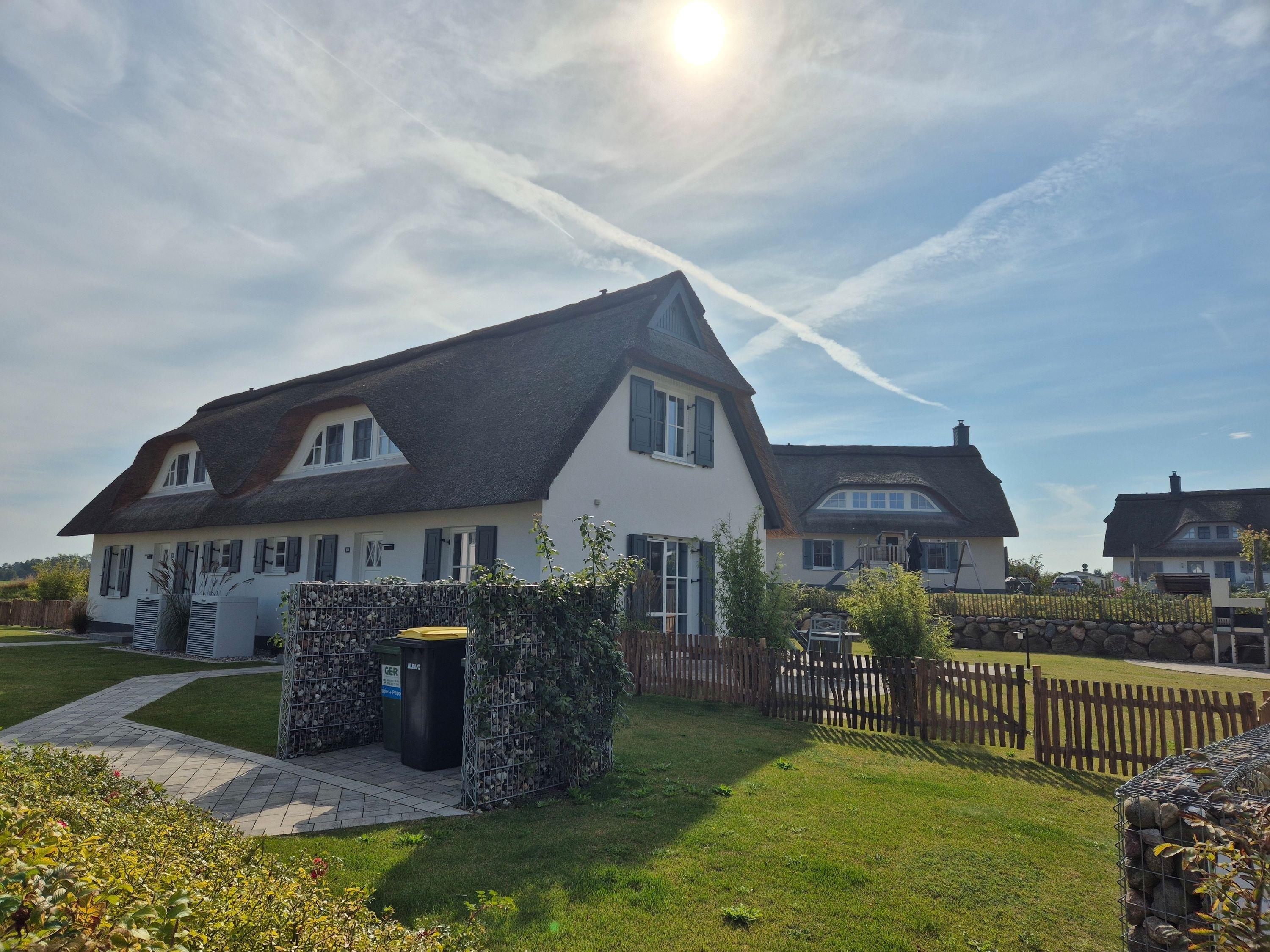 Willkommen im Haus "Strandhafer" - Das Doppelferienhaus unter Reet befindet sich am Rand des Reethausgebietes "De Poeler Drift"mit einem wundervollen Blick über die Wiesen und Felder zur Wismarbucht.