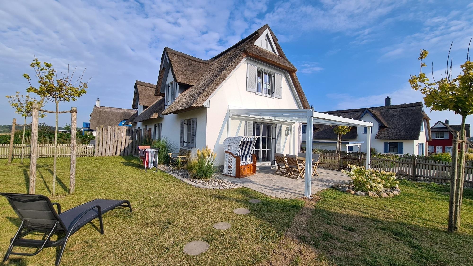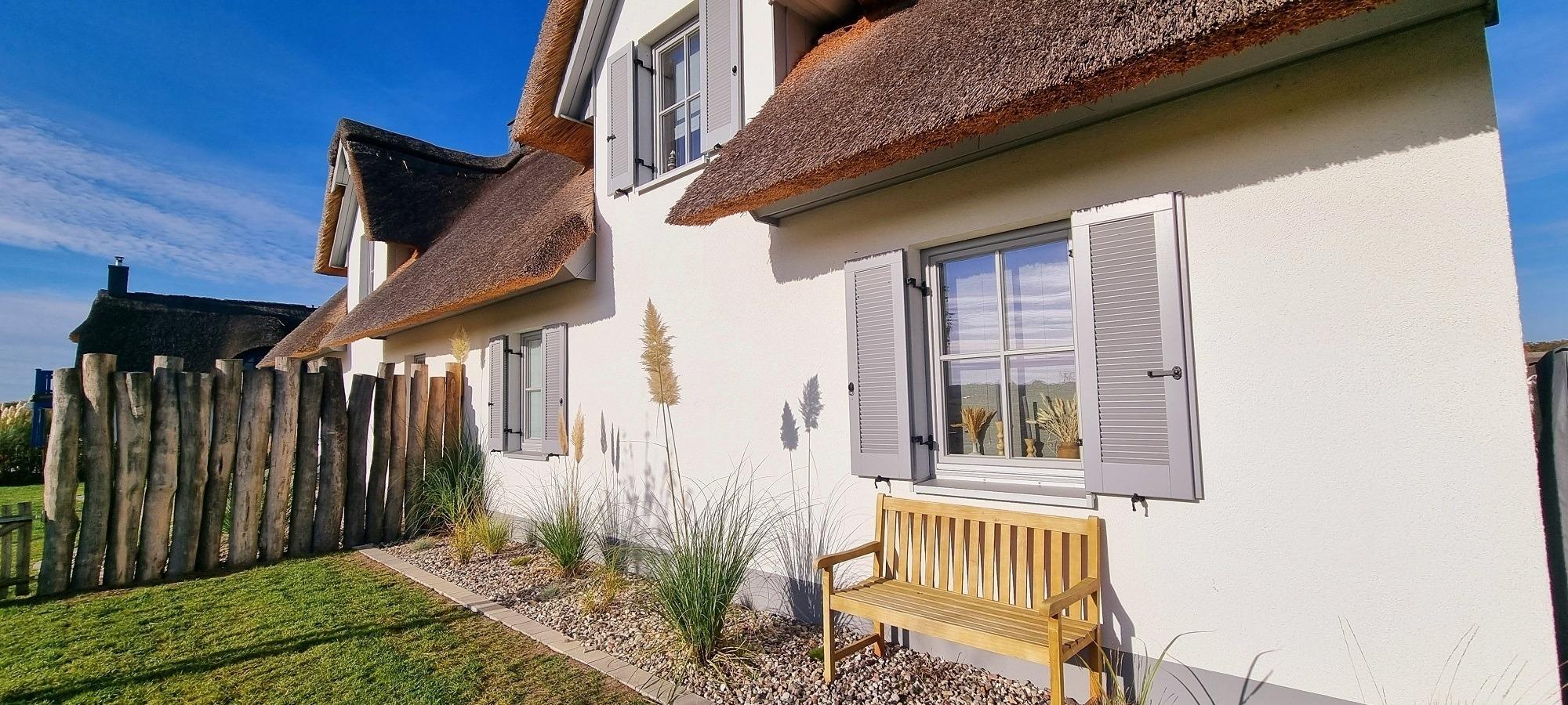 Zum Nachbarhaus wurde ein Sichtschutz durch Rundhölzer hergestellt, denn Intimsphäre ist auch im Urlaub wichtig. Sollten befreundete Familien das Nachbarhaus "Majupani" nutzen, kann das Gartentor für mehr Miteinander geöffnet werden. Das Reethaus "Strandmuschel" liegt ruhig am Rande des Feriengebiets "De Poeler Drift" in Zierow. Kein Durchgangsverkehr stört die Ruhe und die Aussicht über die grünen Felder. Kinder können ungestört auf dem Spielplatz der gemeinsamen Grünfläche toben und zum familienfreundlichen, flach abfallenden Sandstrand gelangen Sie abseits vom Autoverkehr über einen Fußweg (ca. 800 Meter). Wer Kultur und Abwechslung sucht, freut sich über die nahegelegenen Städte Wismar (8 km), Schwerin (35 km), Lübeck (70 km) und Rostock (74km).