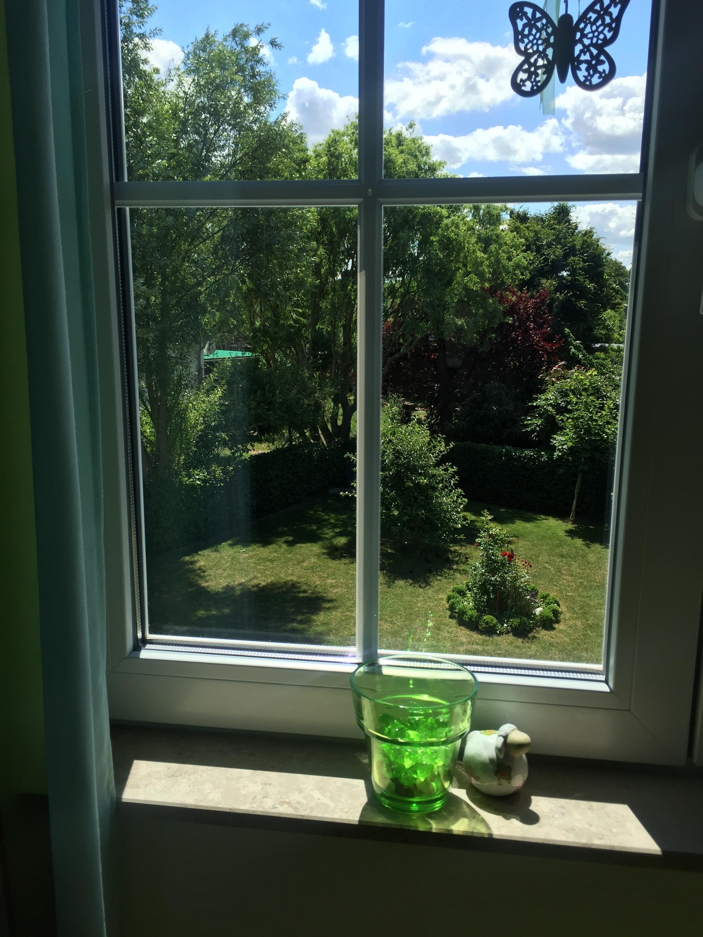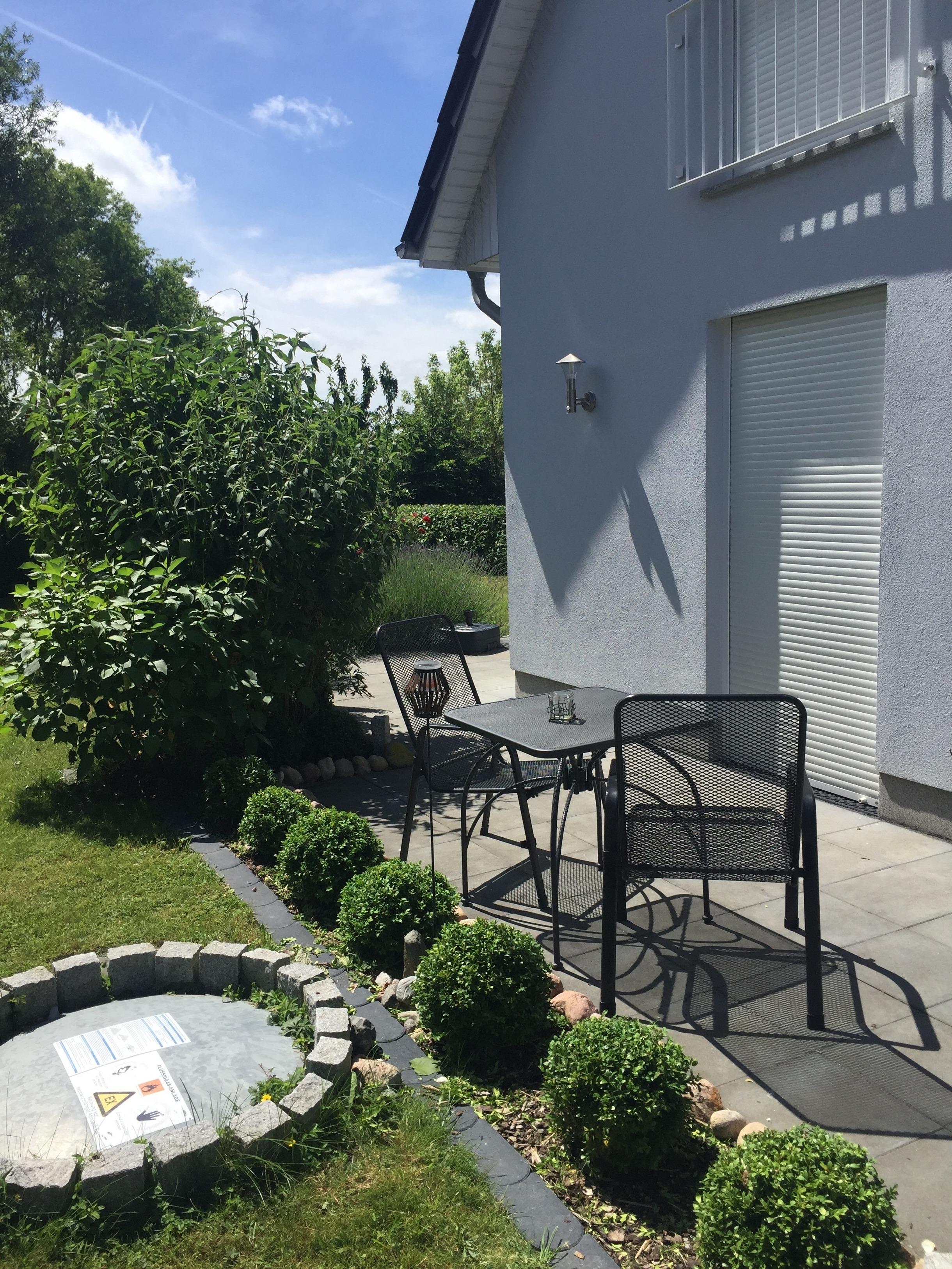 Im Erdgeschoss befindet sich ein großzügiger Wohn-, Koch- und Essbereich mit Blick zum Garten durch die offene Gestaltung und großzügige Fenstertüren, hier kann man direkt zur Rund-ums-Haus-Terrasse in den parkähnlichem Garten gehen, dieser ist eingezäunt und bietet Privatsphäre. Sonne und Lavendelduft, mit Schattenplätzen bieten Atmosphäre.