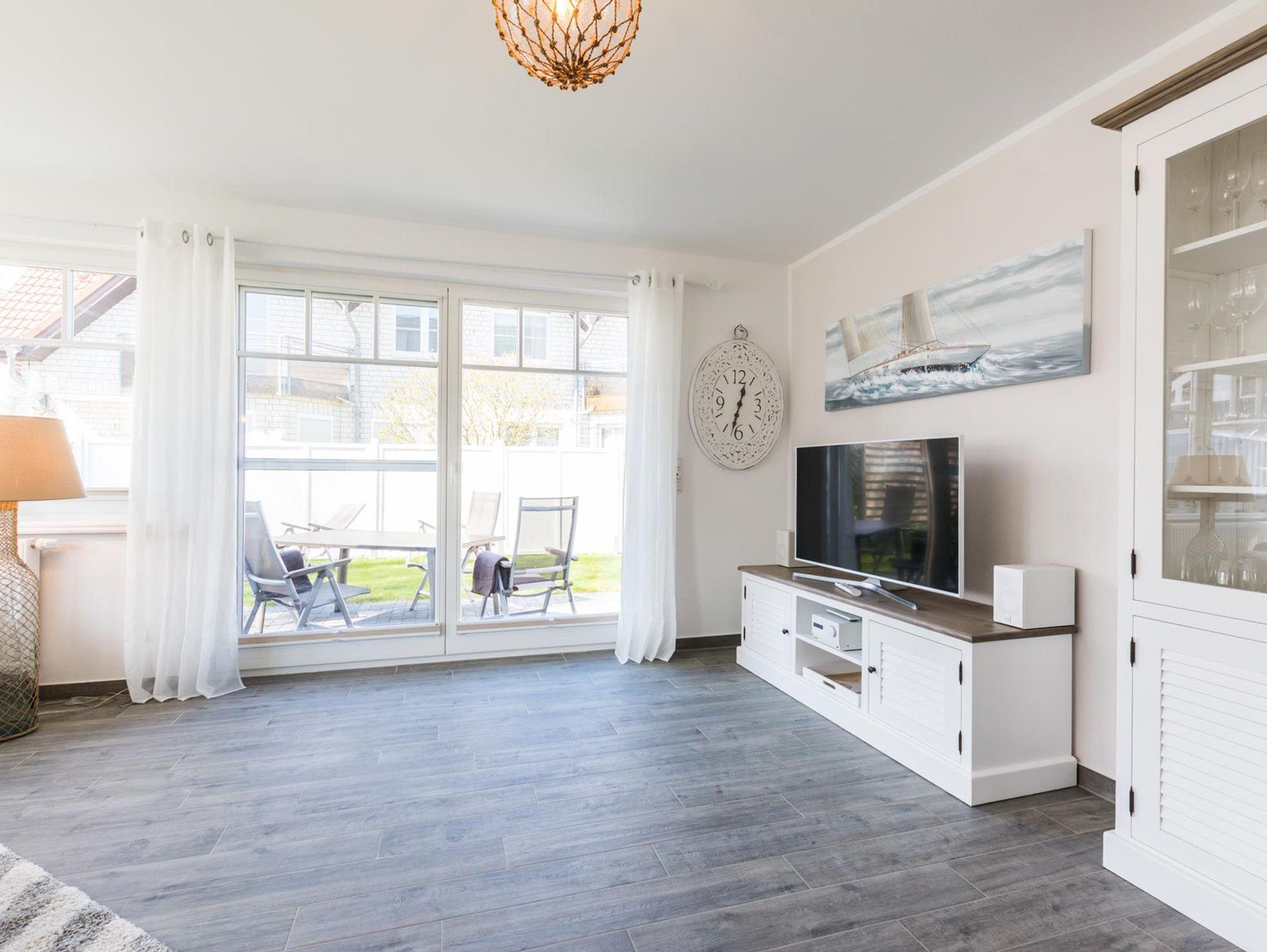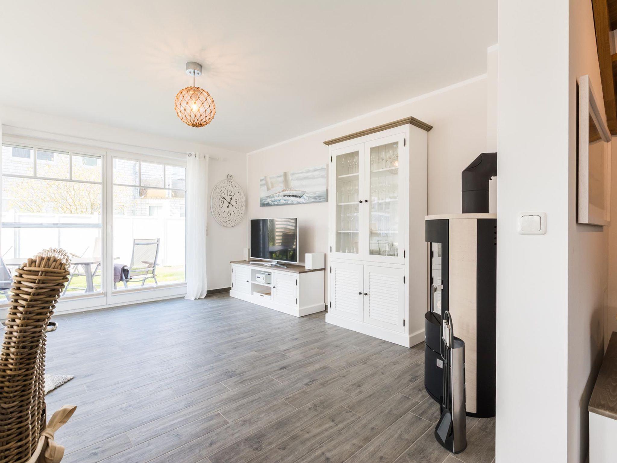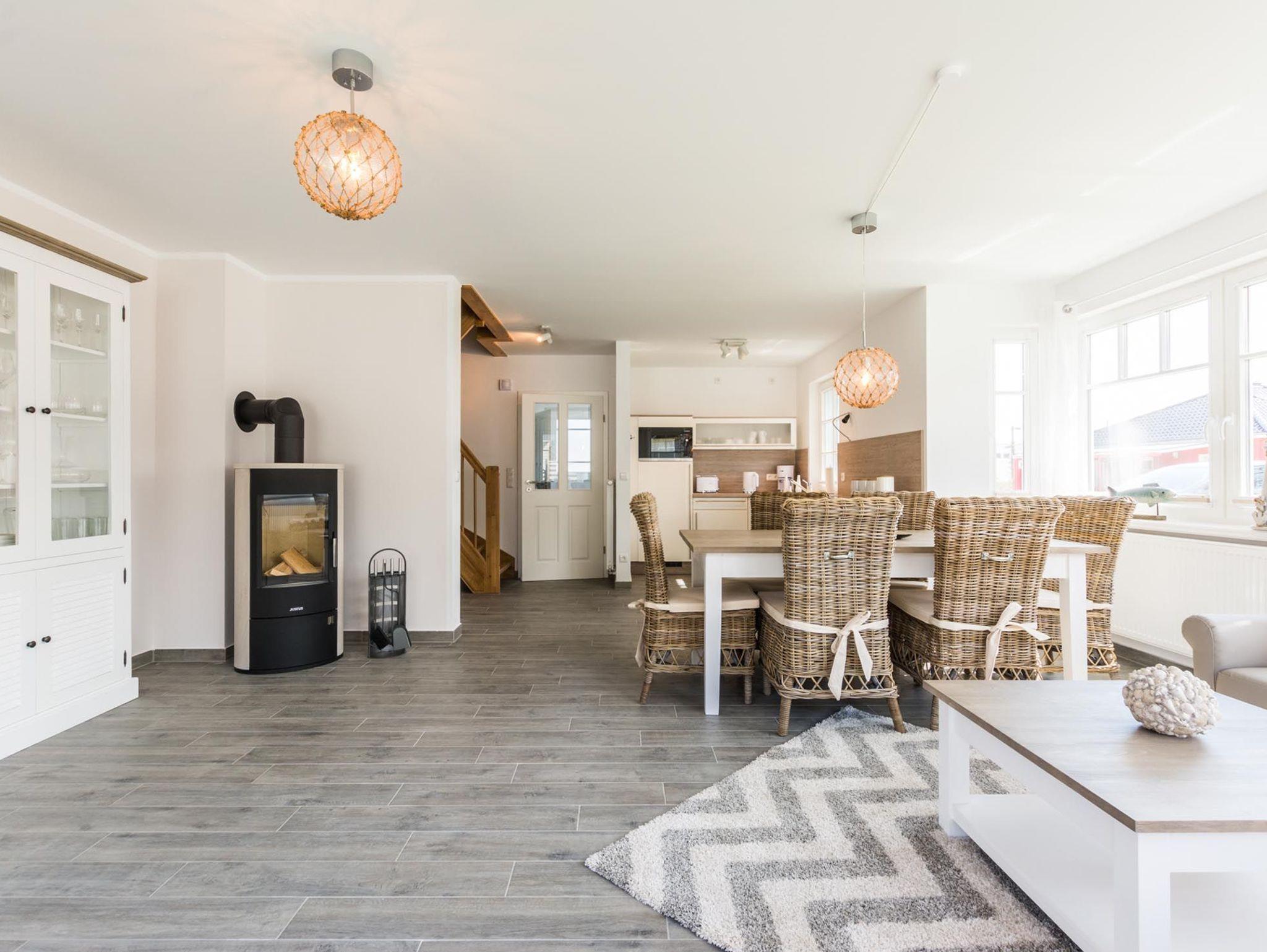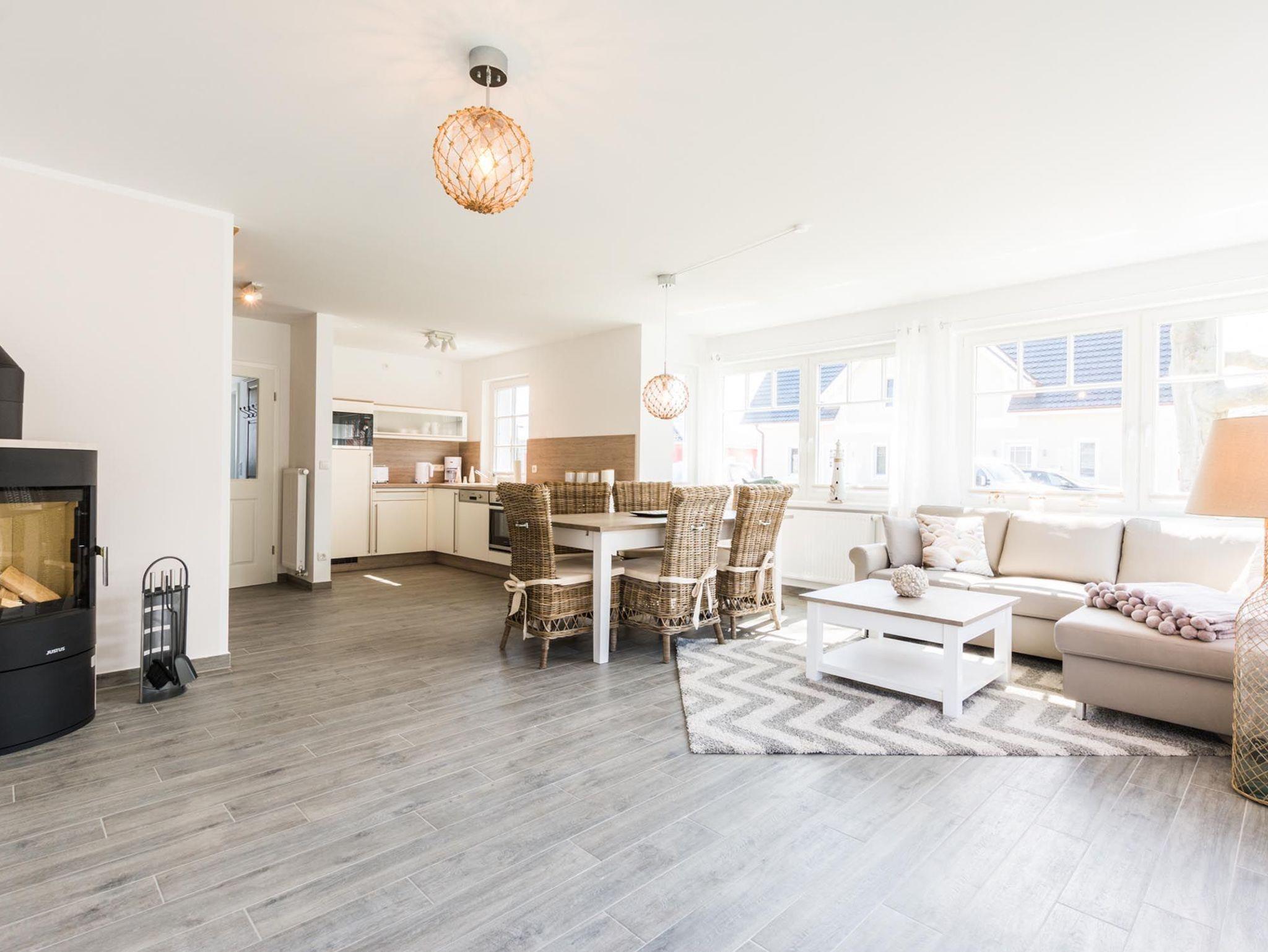 Erholen Sie sich in der Doppelhaushälfte Haus Ausspanne in Zingst mit großzügigem Wohnraum, Kamin und Terrasse.