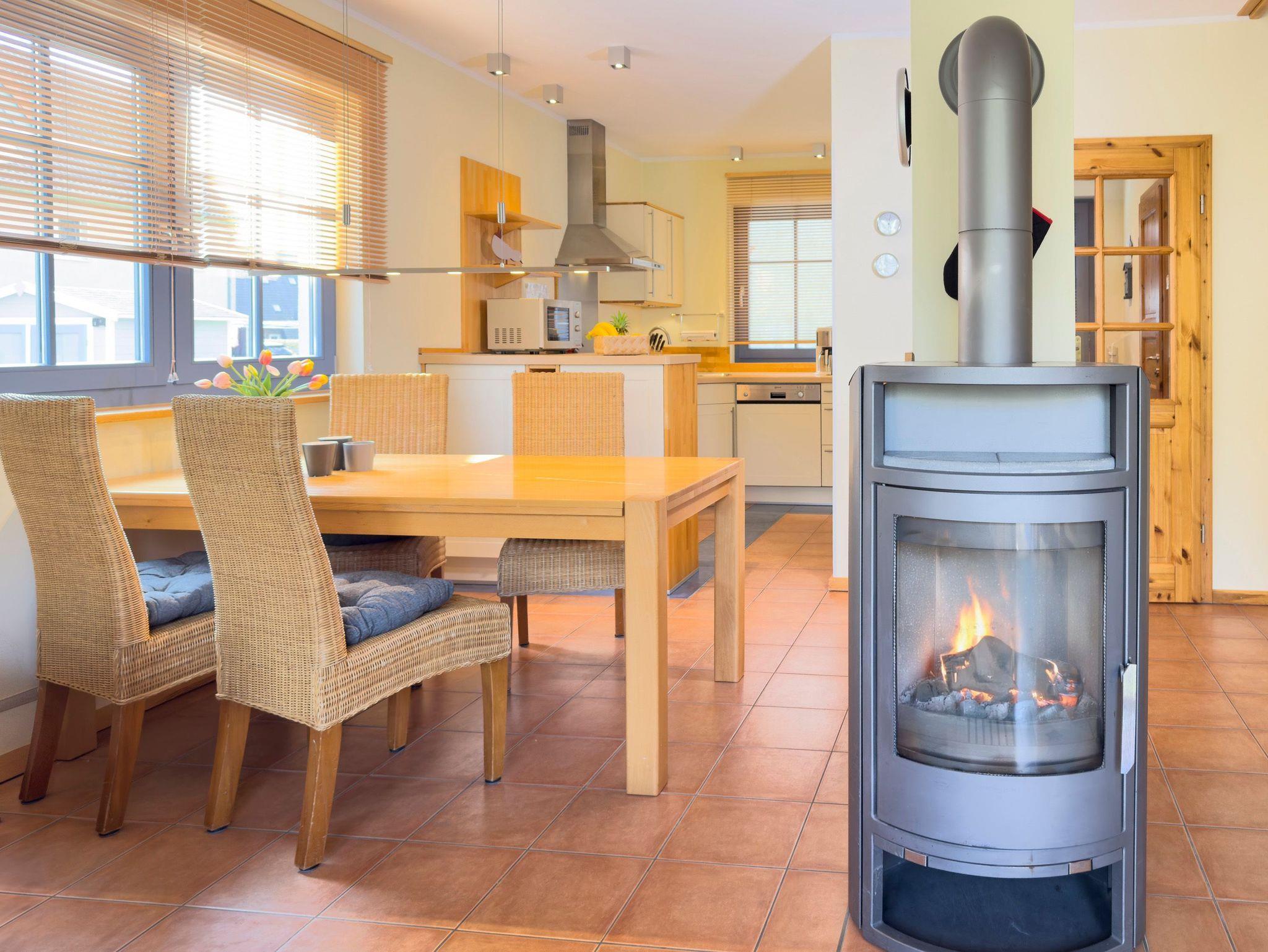 • Lichtdurchfluteter Wohnbereich mit Kaminofen für gemütliche Abende