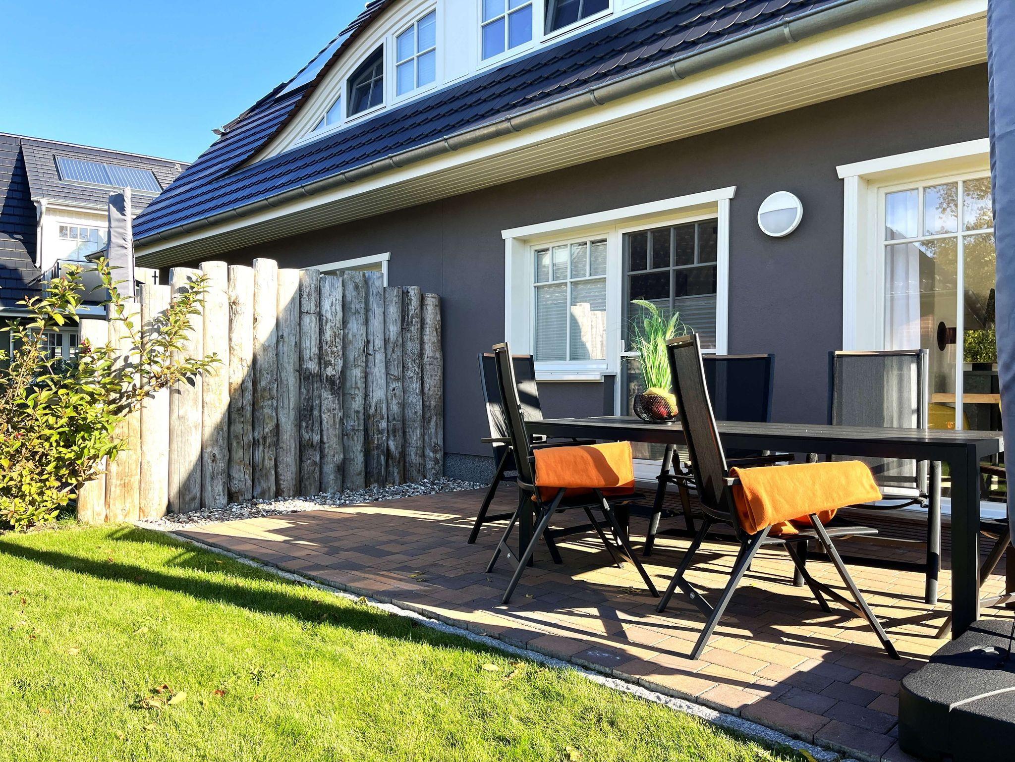 Die Terrasse mit angrenzenden begrüntem Gartenanteil verspricht entspannte Stunden an frischer Luft. Als Sichtschutz wurden original Buhnen verbaut, die bis vor kurzem noch in der Ostsee standen.