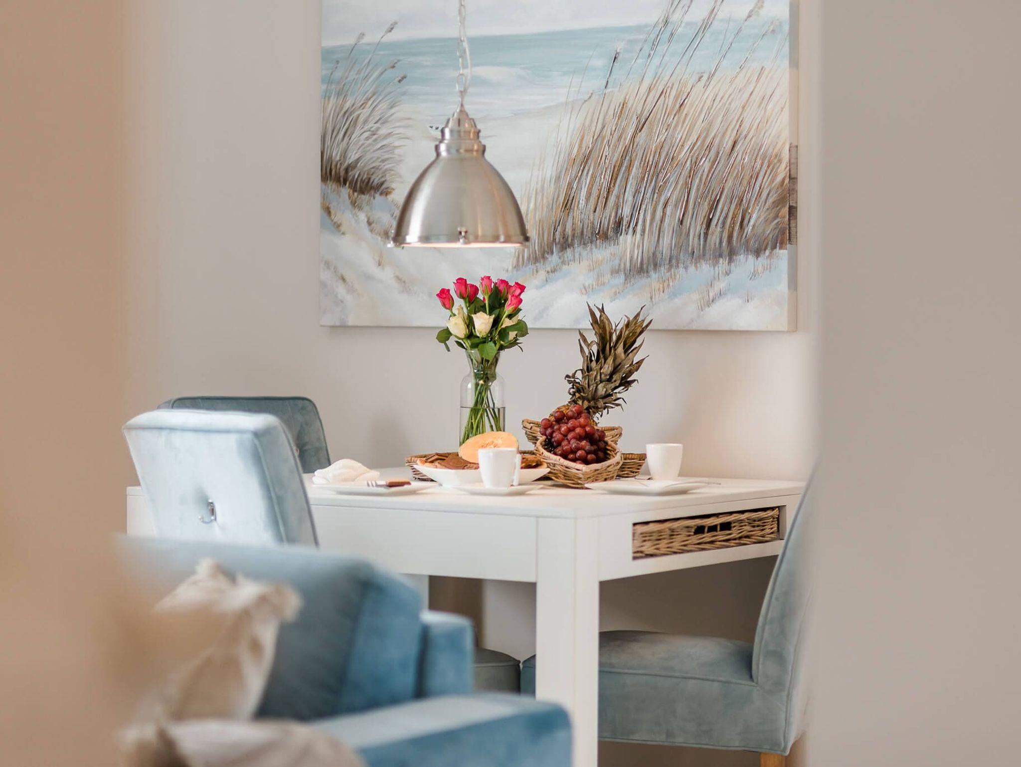 In der Kleinen Auszeit in Zingst können Sie den Sommertag mit einem ausgedehnten Frühstück auf der Terrasse beginnen, oder bei einem Glas Wein am Abend ausklingen lassen.
