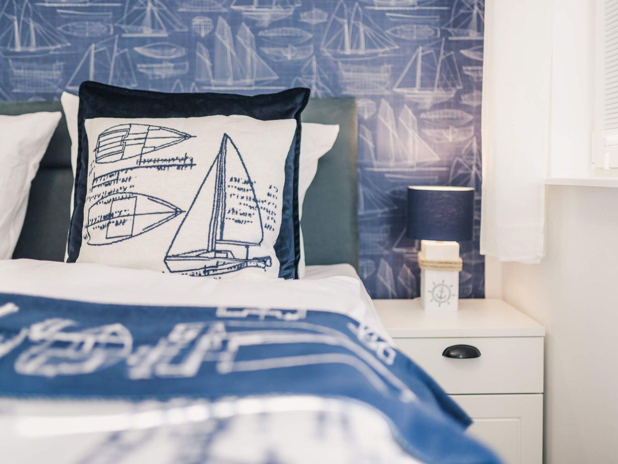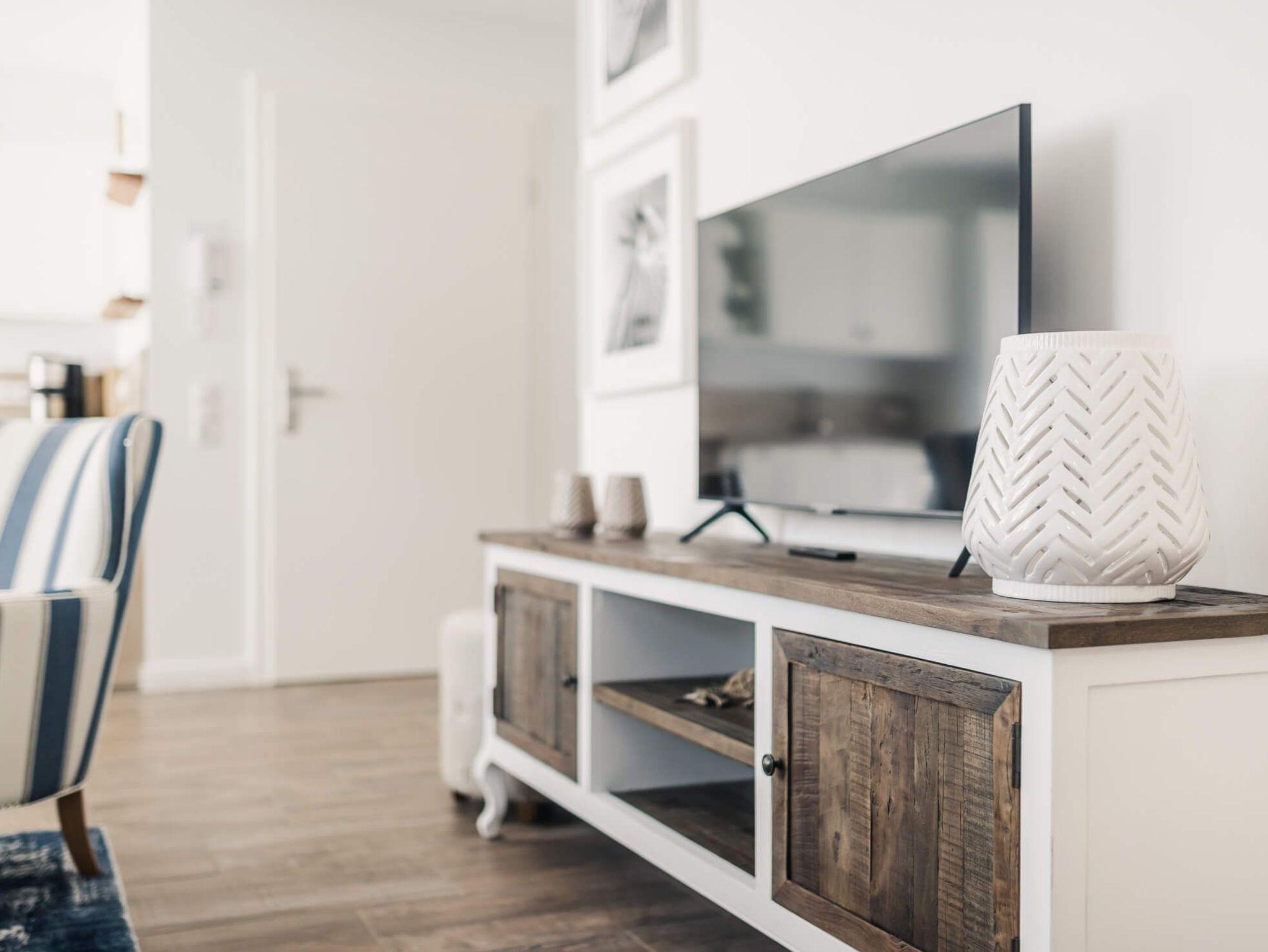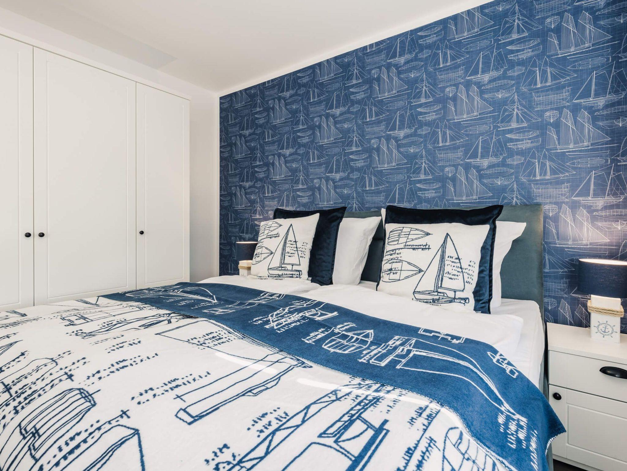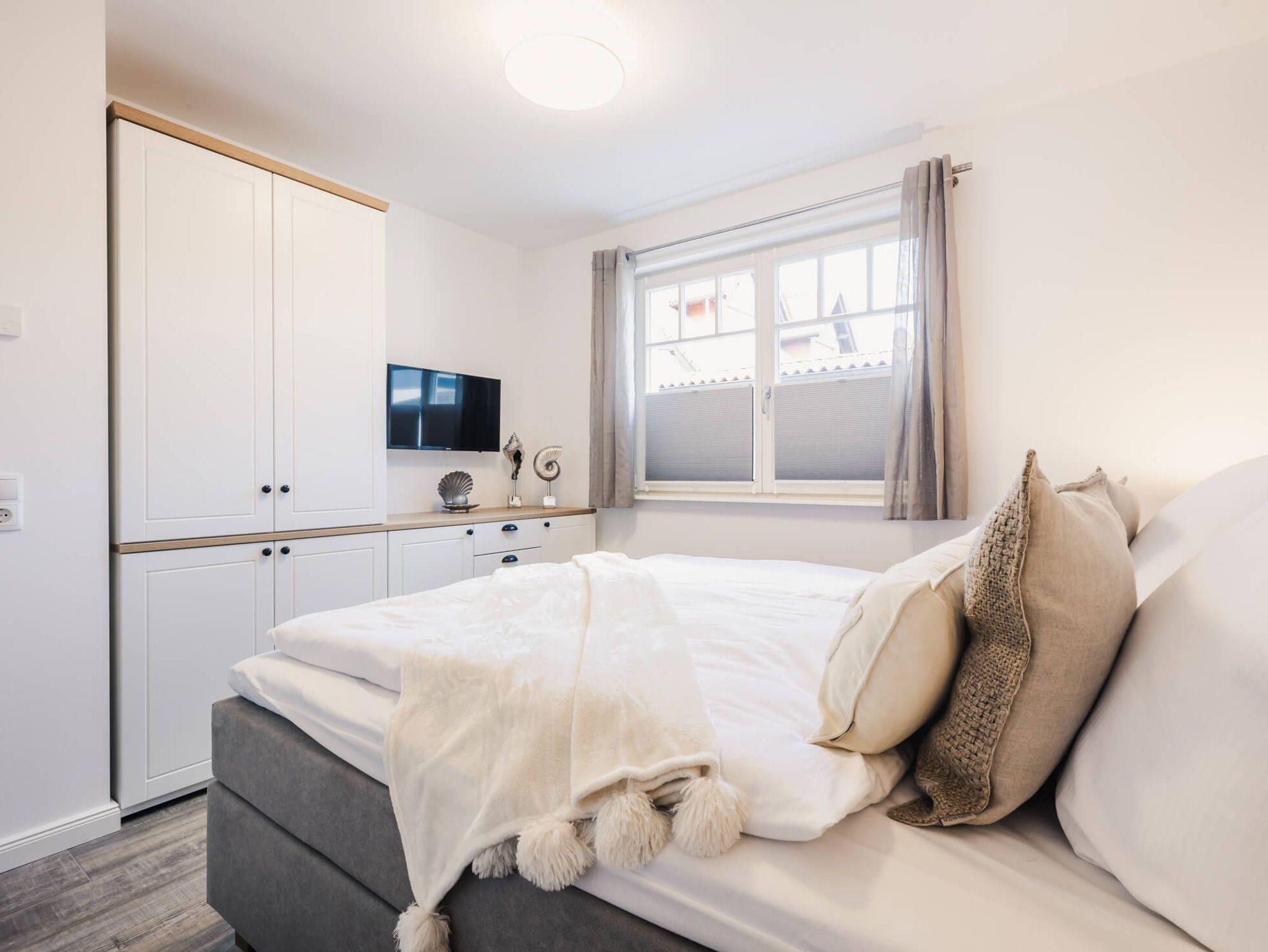Die Wohnung verfügt über einen großzügigen Wohnbereich mit offener voll ausgestatteter Küche mit Spülmaschine, Mikrowelle, Ceranfeld und Kaffeemaschine. In zwei modern eingerichteten Schlafzimmern finden Sie bequeme Boxspringbetten (180 x 200 cm) und je ein Smart-TV.