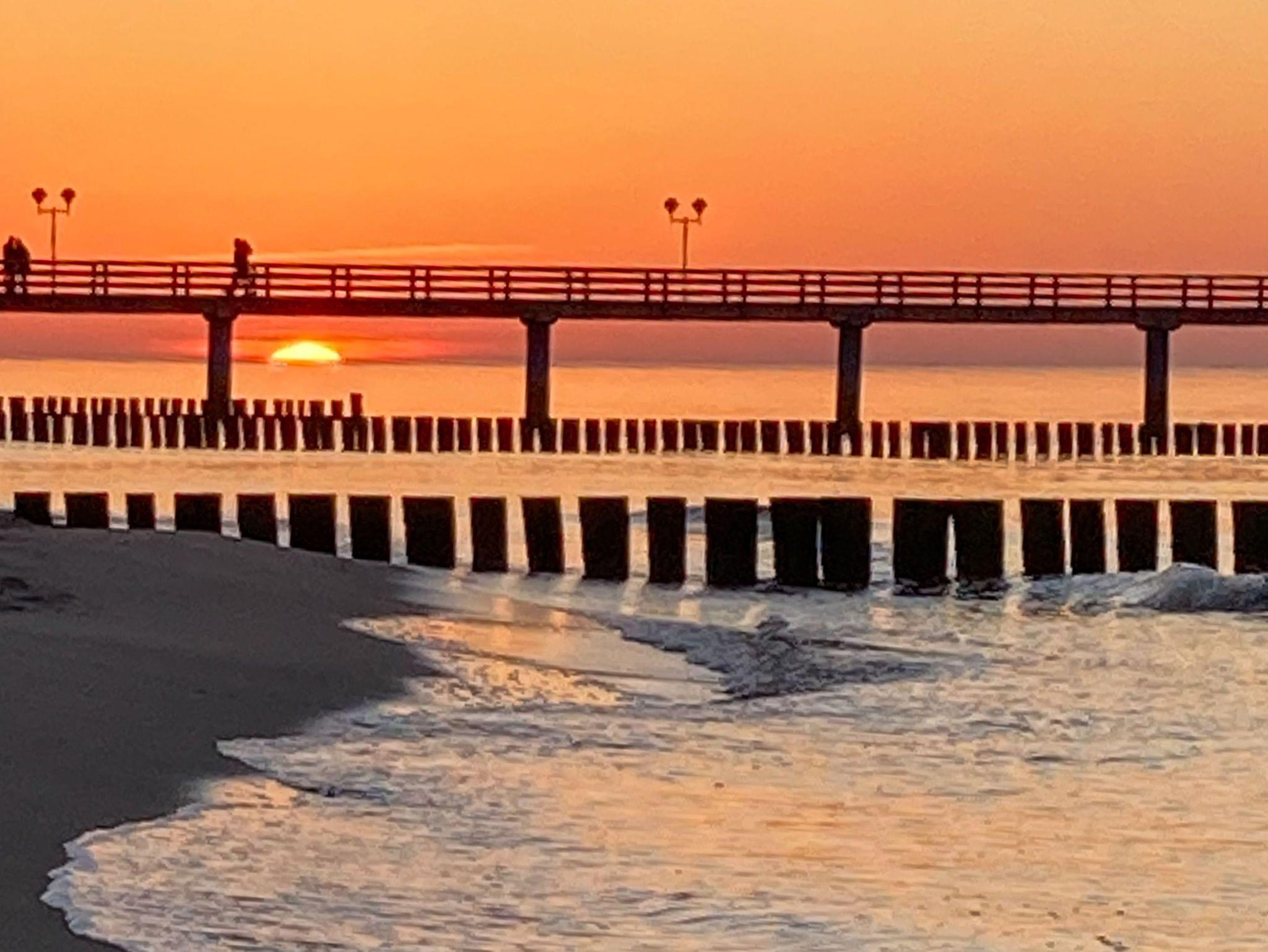 Die Ferienwohnung Heimathafen in Zingst bietet dir auf rund 55m² im 1. Obergeschoss einen gemütlichen Rückzugsort für bis zu drei Personen, perfekt für Paare oder kleine Familien, die Urlaub am Meer lieben. Im Schlafzimmer sorgt ein komfortables Doppelbett (180x200) für erholsame Nächte. Das Wohnzimmer ist mit einem Schlafsofa (160x200), einem TV und einem Esstisch ausgestattet - ideal, um gemeinsam zu entspannen oder einen gemütlichen Abend zu verbringen. Von hier aus gelangst du direkt auf den möblierten Balkon, der an sonnigen Tagen zum Frühstück im Freien oder entspannten Lesestunden einlädt. Die Küche ist separat und voll ausgestattet mit Herd, Backofen, Kühlschrank, Spülmaschine, Wasserkocher, Toaster, Kaffeemaschine und sogar einer Waschmaschine - ideal für einen längeren Aufenthalt. Praktisch: Die kleine Durchreiche ins Wohnzimmer verbindet beide Räume charmant und funktional. Im Badezimmer wartet eine Badewanne auf dich, perfekt für eine kleine Auszeit nach einem Tag am Strand.