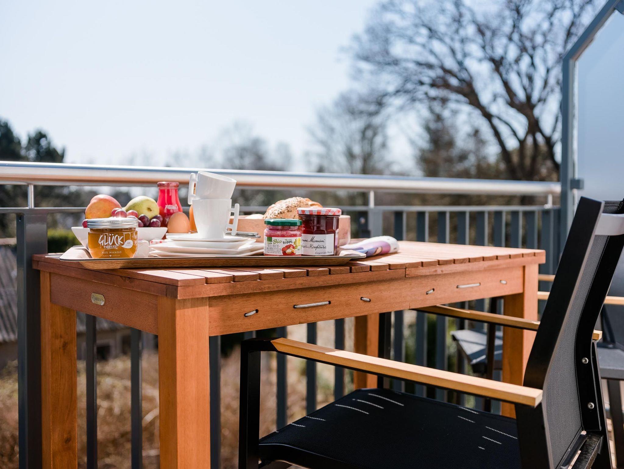 Zur hochwertigen Ausstattung gehören ebenso vier möblierte Balkone auf denen Sie wunderschöne Sonnenuntergänge mit Blick auf das Meer sowie gen Süden genießen können.