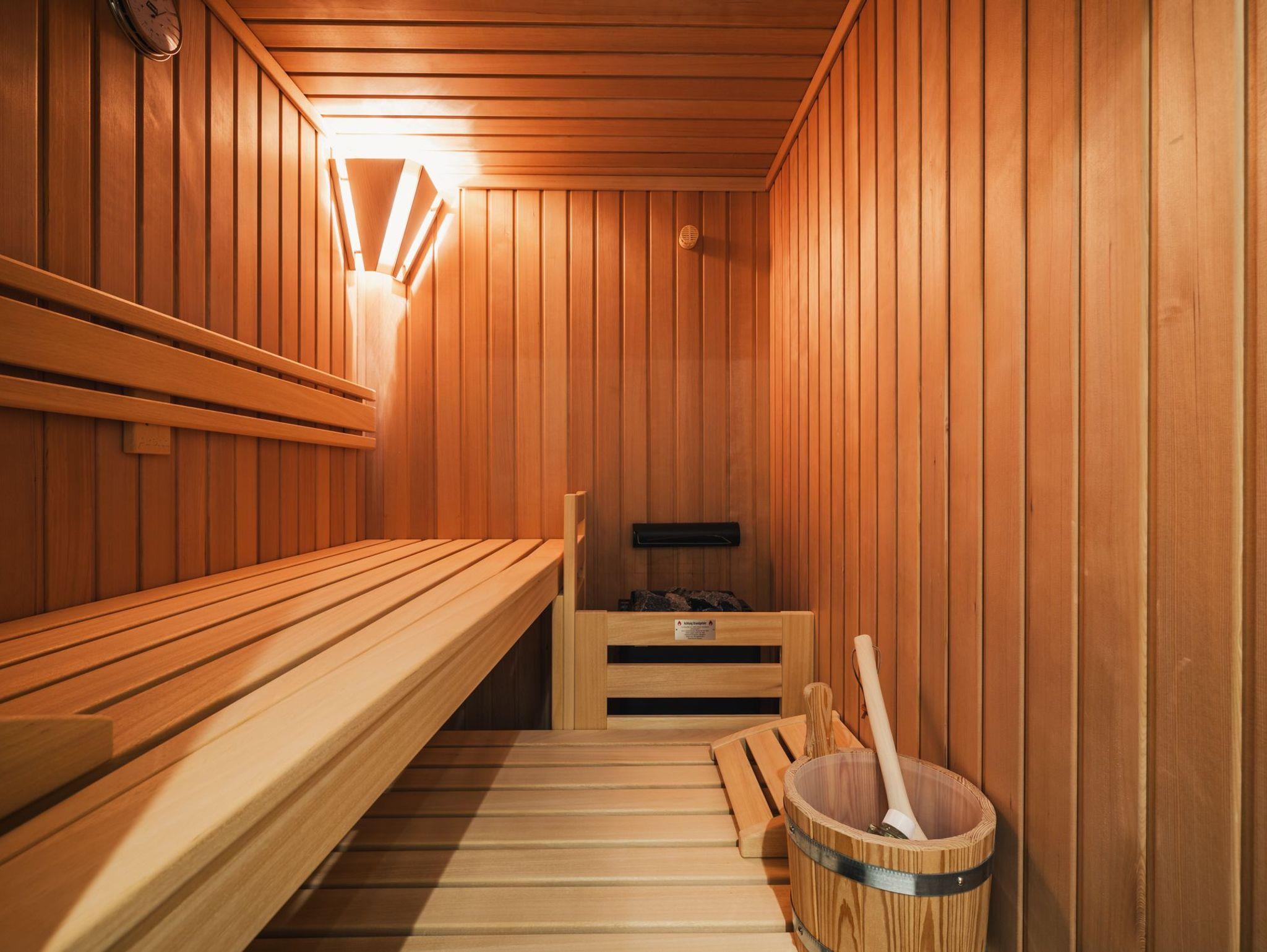 • Modernes Bad mit ebenerdiger Dusche und Zugang zur privaten Sauna