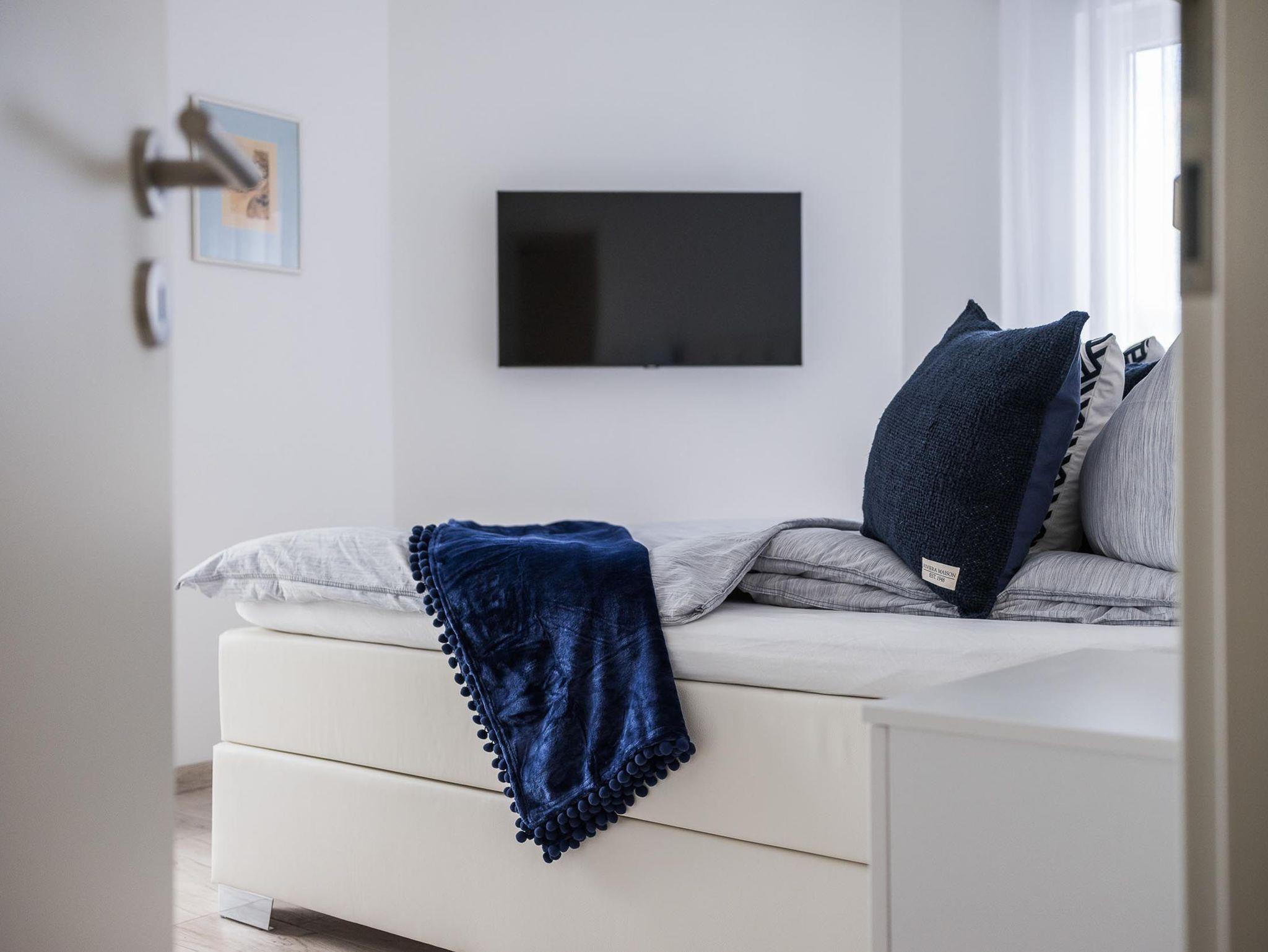 Die beiden Schlafzimmer sind jeweils mit einem großen, sehr bequemen Boxspringbett ausgestattet und garantieren traumhaft erholsamen Schlaf. Beide Schlafzimmer verfügen über ein TV-Gerät.
