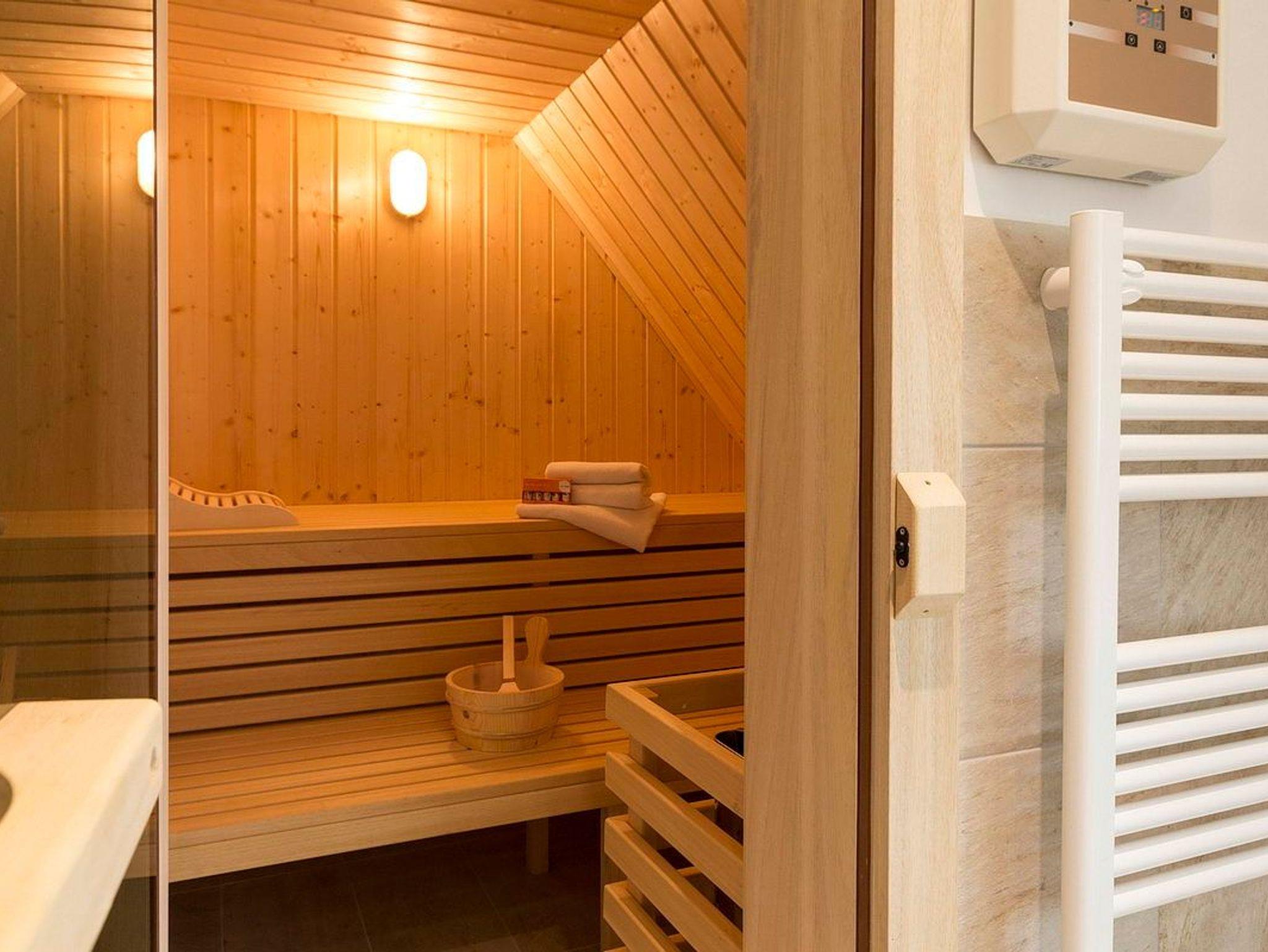 Ein besonderes Highlight ist die private Sauna, in der warme Entspannung und ruhige Wohlfühlmomente garantiert sind. Kuschelige Bademäntel, Saunatücher und hochwertige Bettwäsche sowie Handtücher in Hotelqualität stehen selbstverständlich bereit und unterstreichen den Anspruch an exklusiven Komfort.