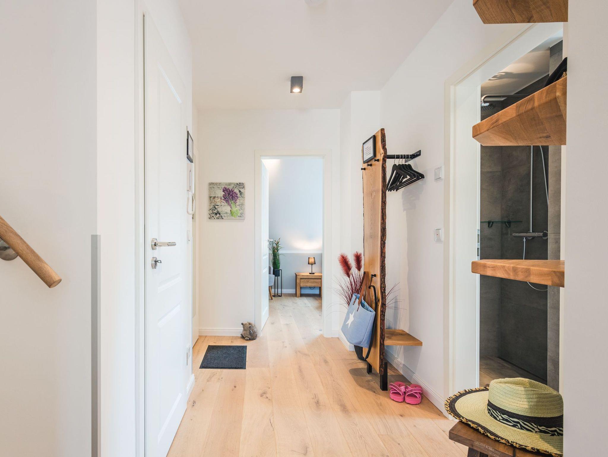 Die schöne Wohnung befindet sich in einem neu erbauten Haus mit Fertigstellung im Juli 2022 und ist mit nur 4 Einheiten optisch sehr ansprechend und im typischen Darßes Stil.