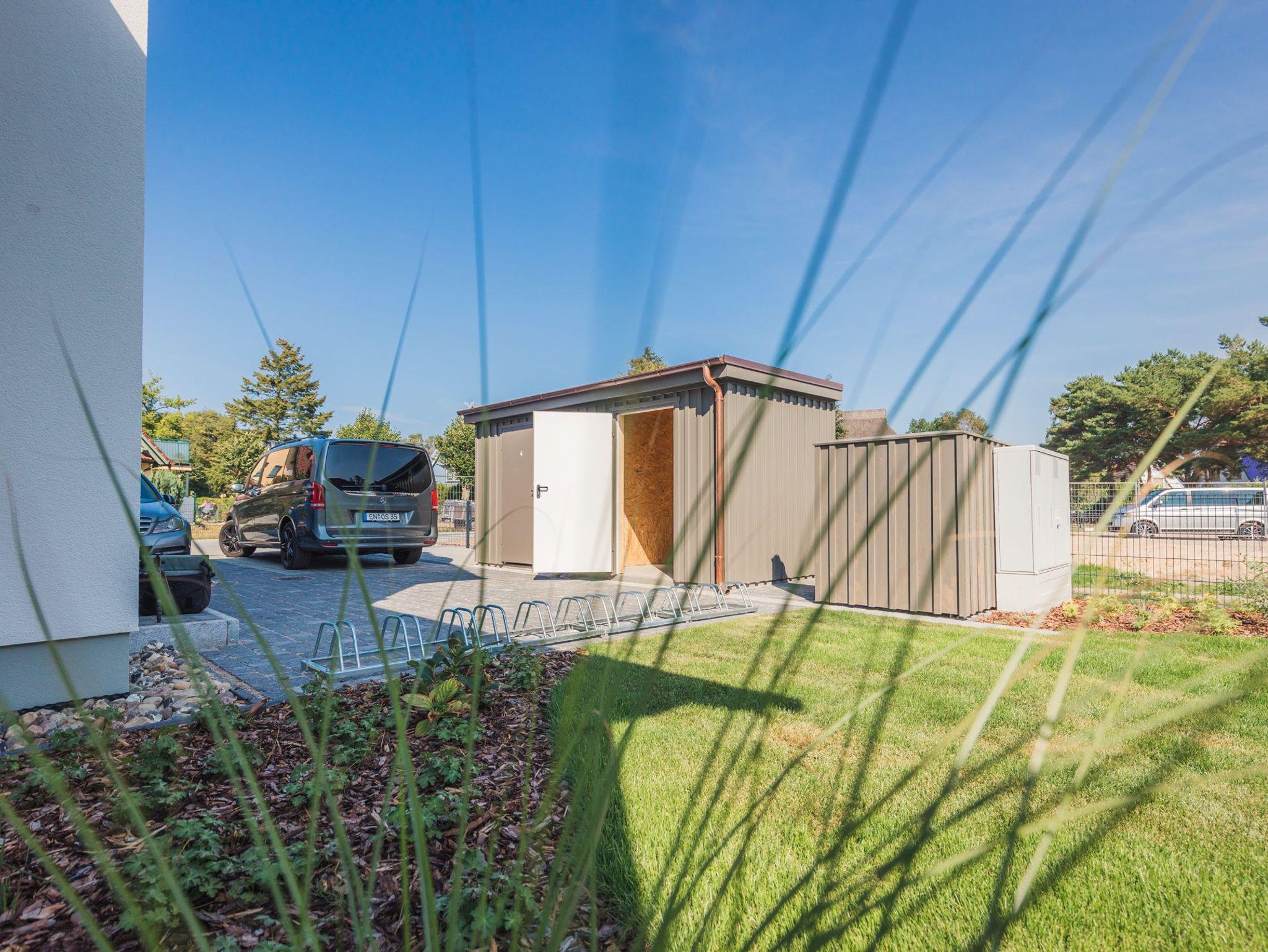 Selbstverständlich gehört ein reservierter Stellplatz ( WG 3 ) auf dem eigene Grundstück sowie ein eigener großzügiger Fahrradschuppen mit viel Abstellfläche direkt vor der Haustür zu Wohnung Auszeit Zingst.