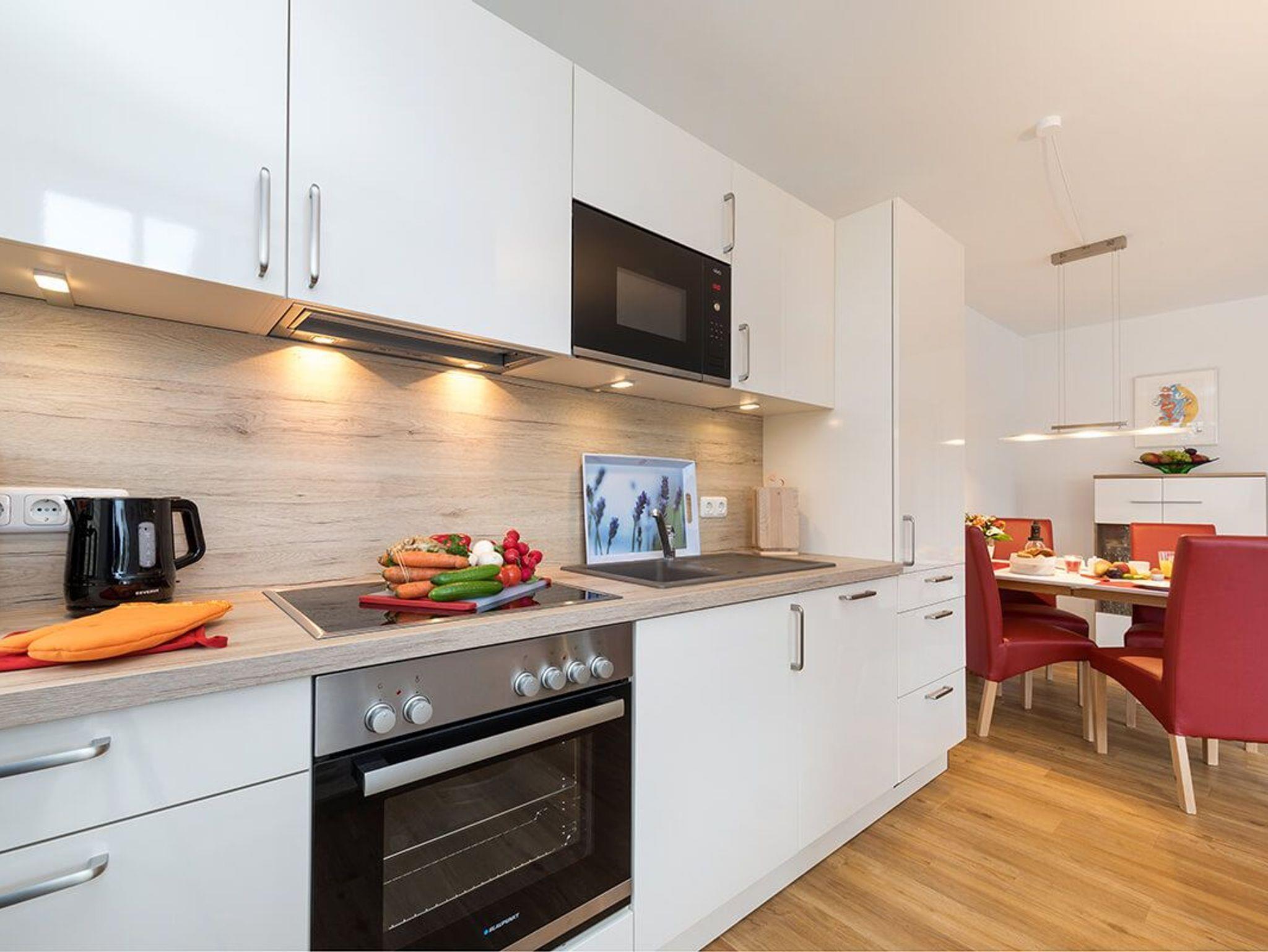 Auf großzügigen 70 m² Wohnfläche bietet dieses Domizil ein außergewöhnliches Platzangebot für zwei Personen. Das weitläufige, hell gestaltete Wohnzimmer bildet das Herzstück der Wohnung und bietet direkten Zugang zur privaten Dachterrasse, von der aus Sie das Treiben im Ort entspannt beobachten können. Die offene, voll ausgestattete Küche mit hochwertigen Geräten ermöglicht volle kulinarische Freiheit. Das separate Schlafzimmer ist mit einem komfortablen Doppelbett (180x200), einem Safe und einem geräumigen Schiebetürenschrank ausgestattet. Ein modernes Badezimmer mit bodengleicher Dusche und eigener Waschmaschine rundet das exklusive Angebot ab.
