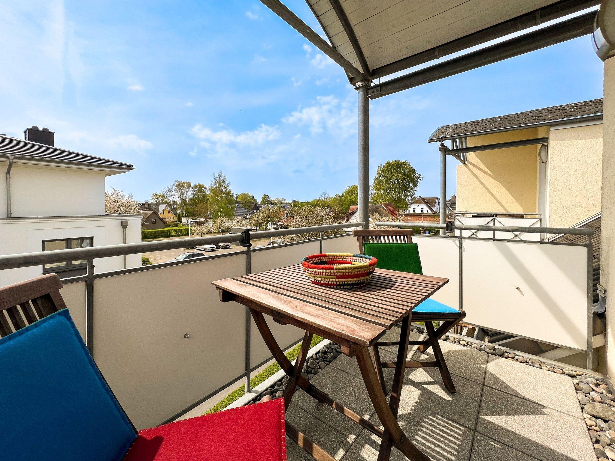 Moderne Dachgeschosswohnung mit Balkon in Zingst, 5 Minuten zum Ostseestrand, ideal für erholsamen Urlaub am Meer.