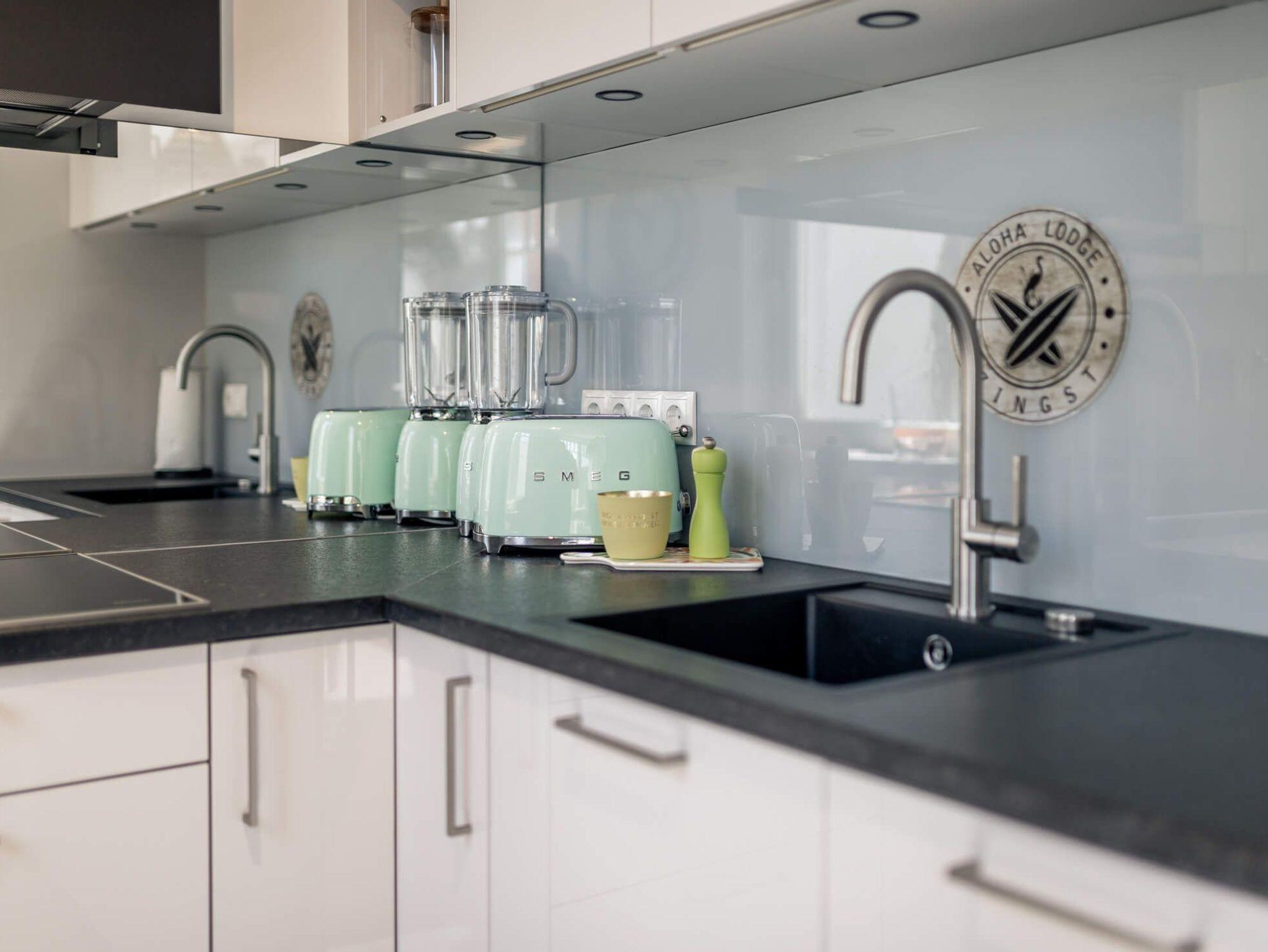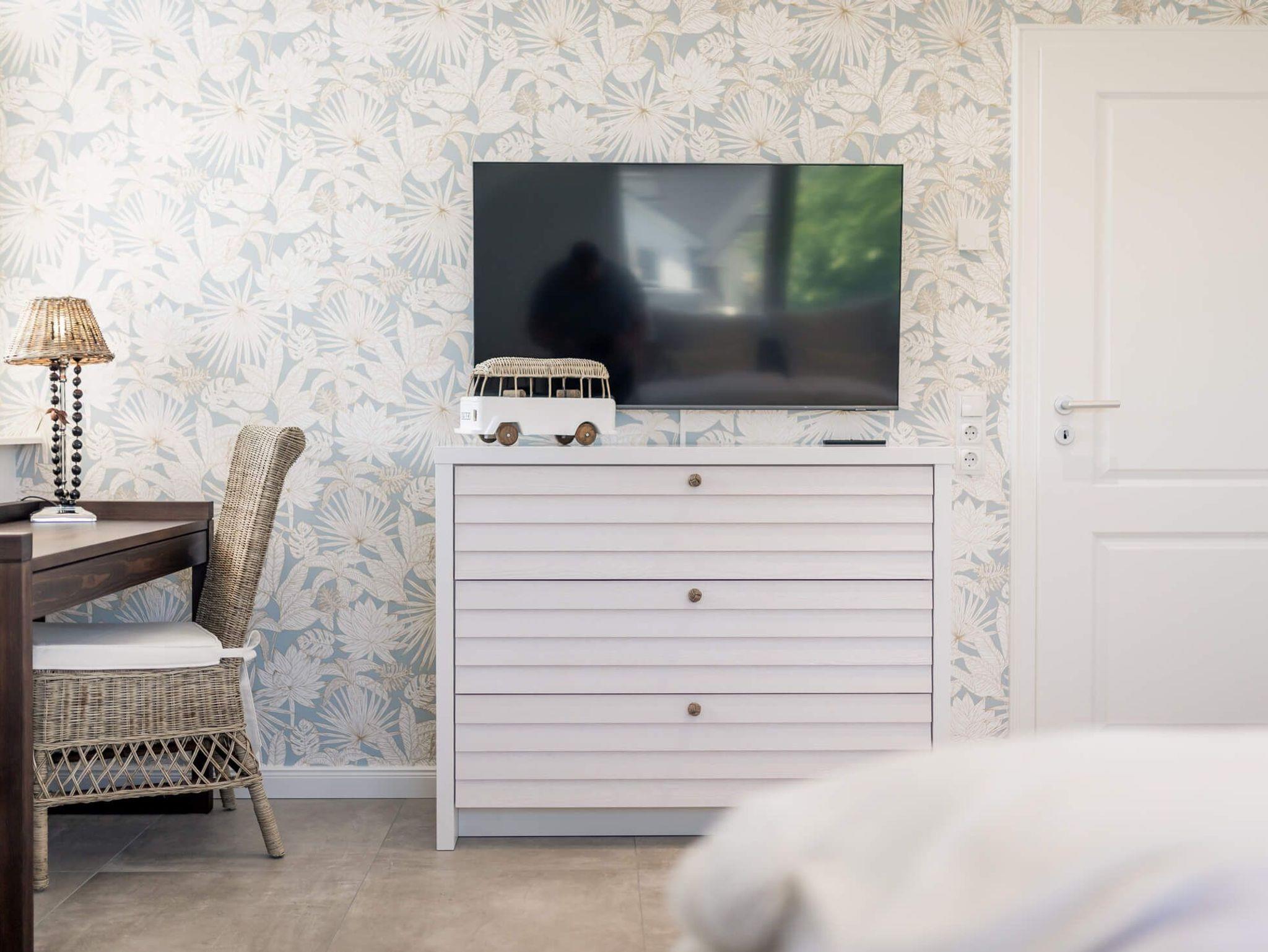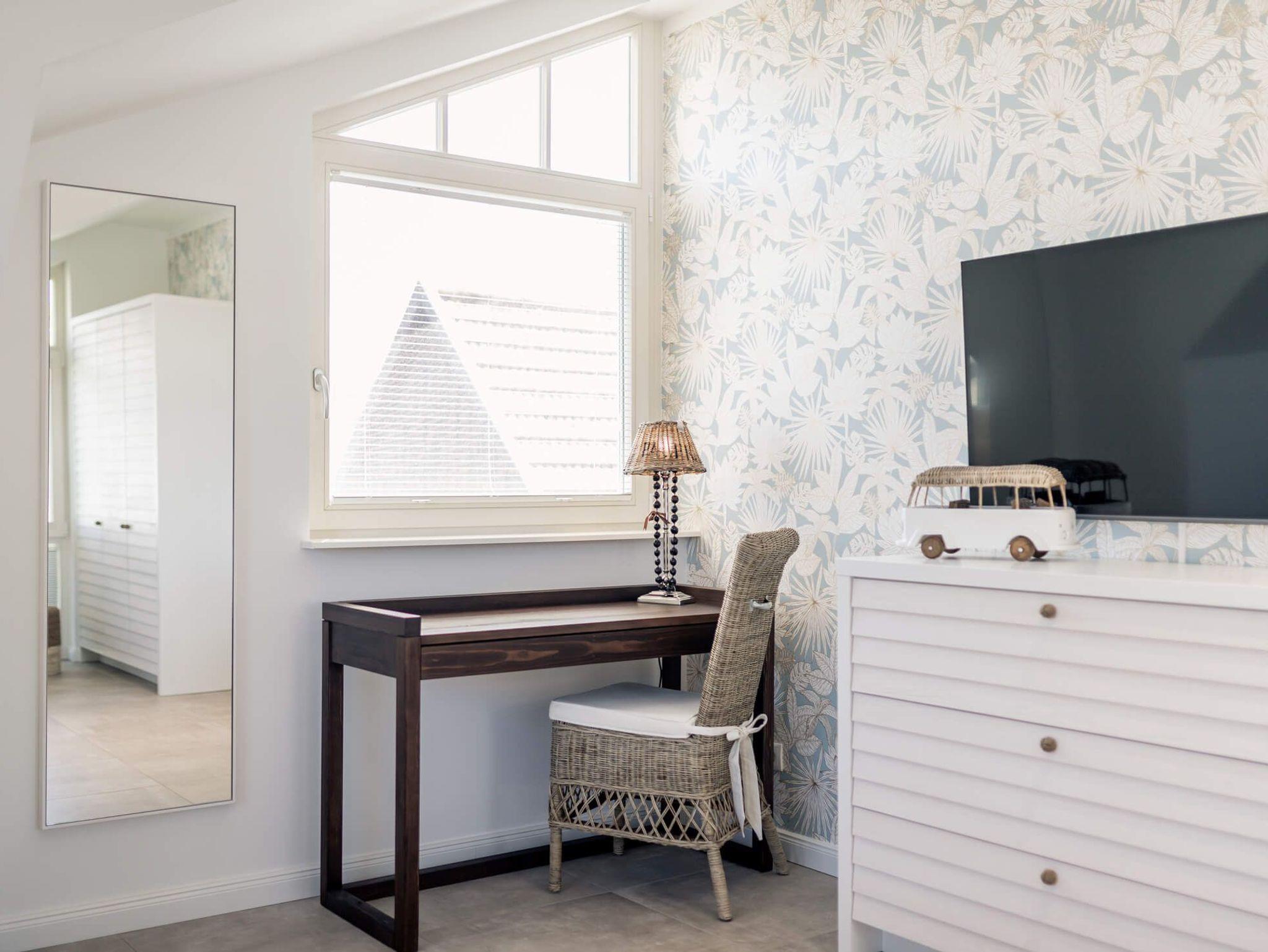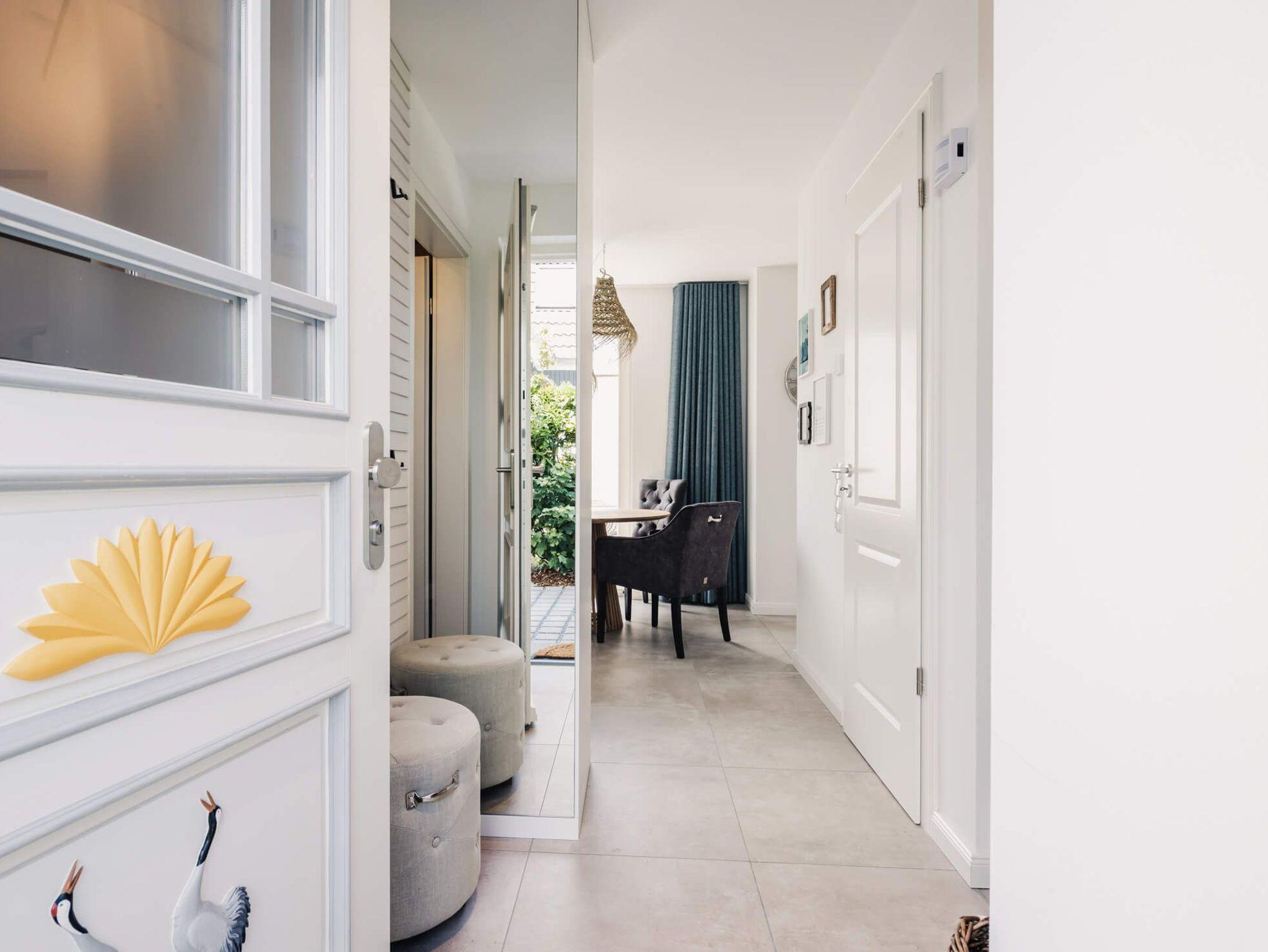 Das Erdgeschoss erfreut mit offener, hochwertig ausgestatteter Küche und lichtdurchflutetem Essbereich. Der Wohnbereich ist gemütlich mit stilvollem Interieur ausgestattet. Ein Schlafzimmer mit zwei Einzelbetten und einem Bad mit ebenerdiger , offener Dusche bietet Ihnen zusätzlichen Komfort. Alle Schlafzimmer sind mit Boxspringbetten ausgestattet und verfügen über Schreibecke und Smart-TV´s.