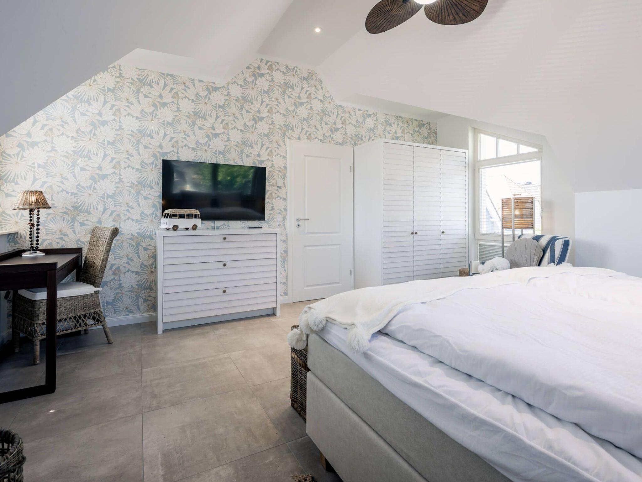 Im Obergeschoss finden Sie ein großzügiges Schlafzimmer zum Relaxen mit Doppel-Kingsize-Bett.