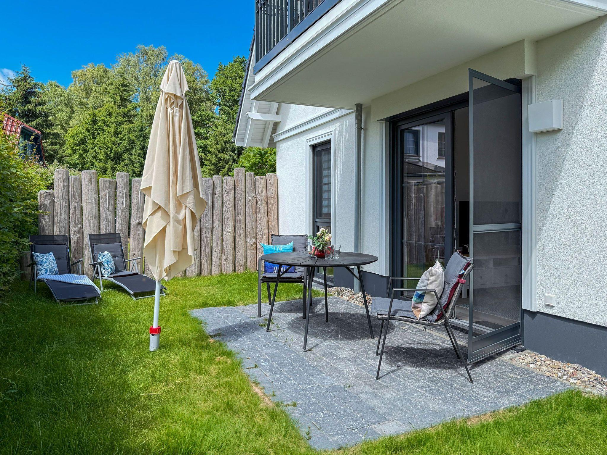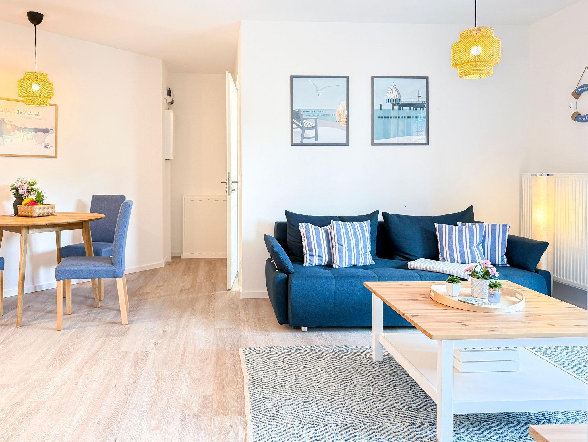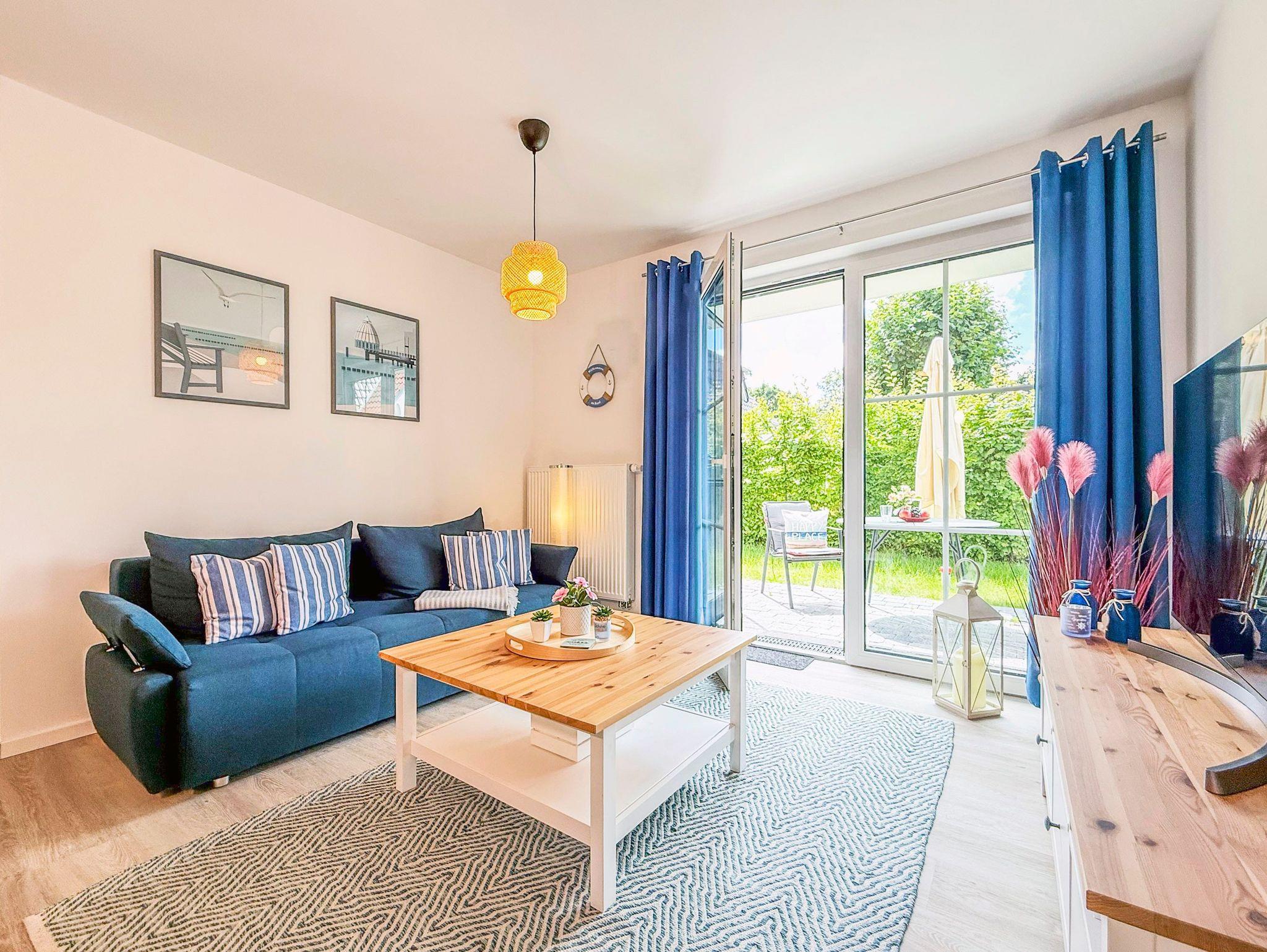 Gemütliche Ferienwohnung Ostseekoje in Zingst mit Terrasse, moderner Küche und WLAN, ideal für erholsame Tage an der Ostsee zu zweit.