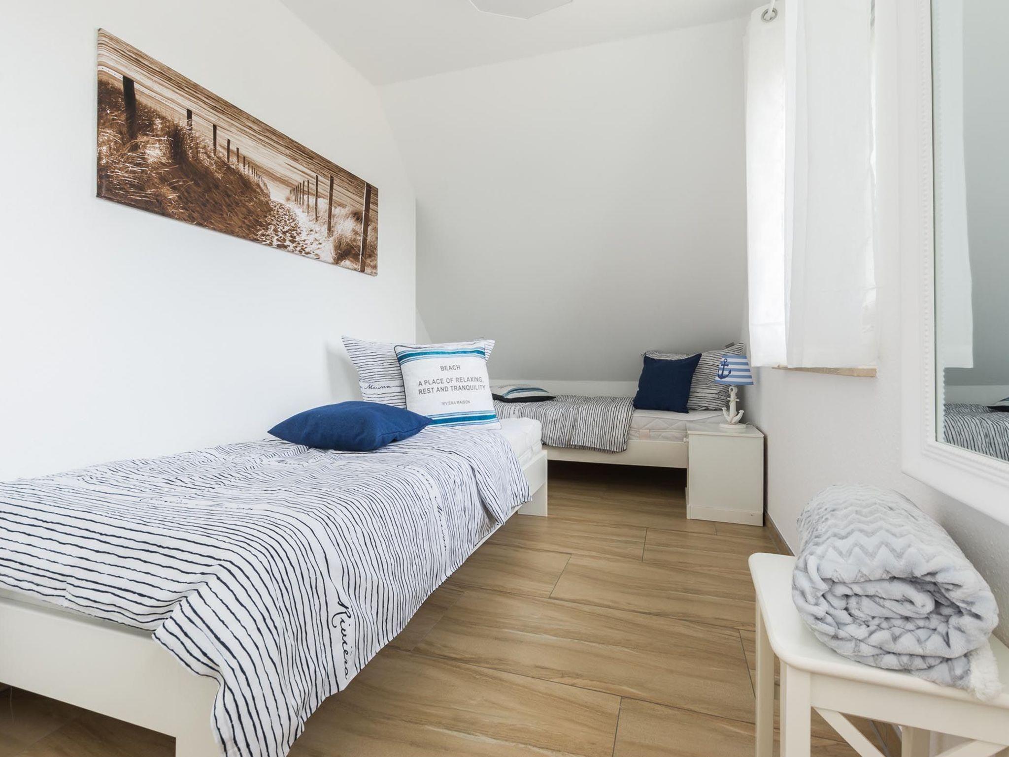 Eines der Schlafzimmer verfügt über ein großes bequemes Boxspringbett. Das andere Schlafzimmer ist mit zwei komfortablen Einzelbetten ausgestattet, welche traumhaften erholsamen Schlaf garantieren.