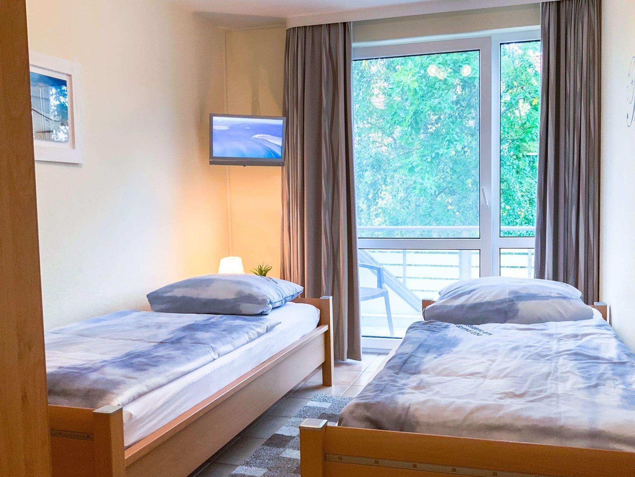 Die Nichtraucher-Wohnung ist ideal für Familien. Das zweite Schlafzimmer mit zwei Einzelbetten und Zugang zum zweiten Balkon bietet Kindern oder weiteren Gästen einen eigenen Rückzugsort. Für die Kleinen stehen ein Kinderreisebett und ein Hochstuhl bereit.