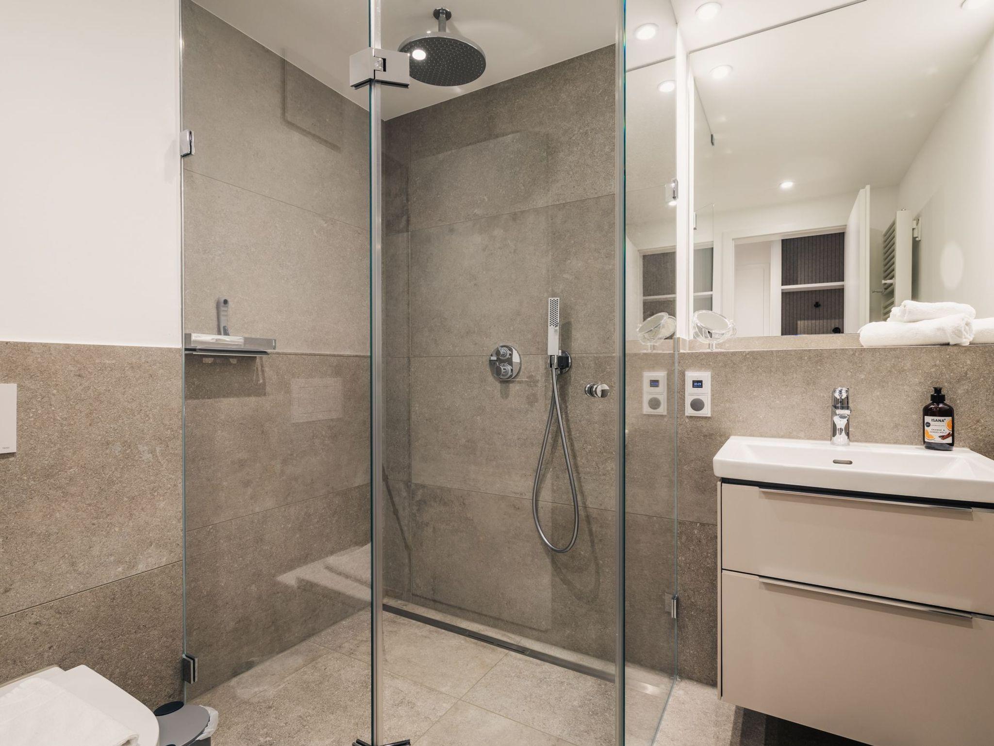 • Modernes Badezimmer mit ebenerdiger Dusche