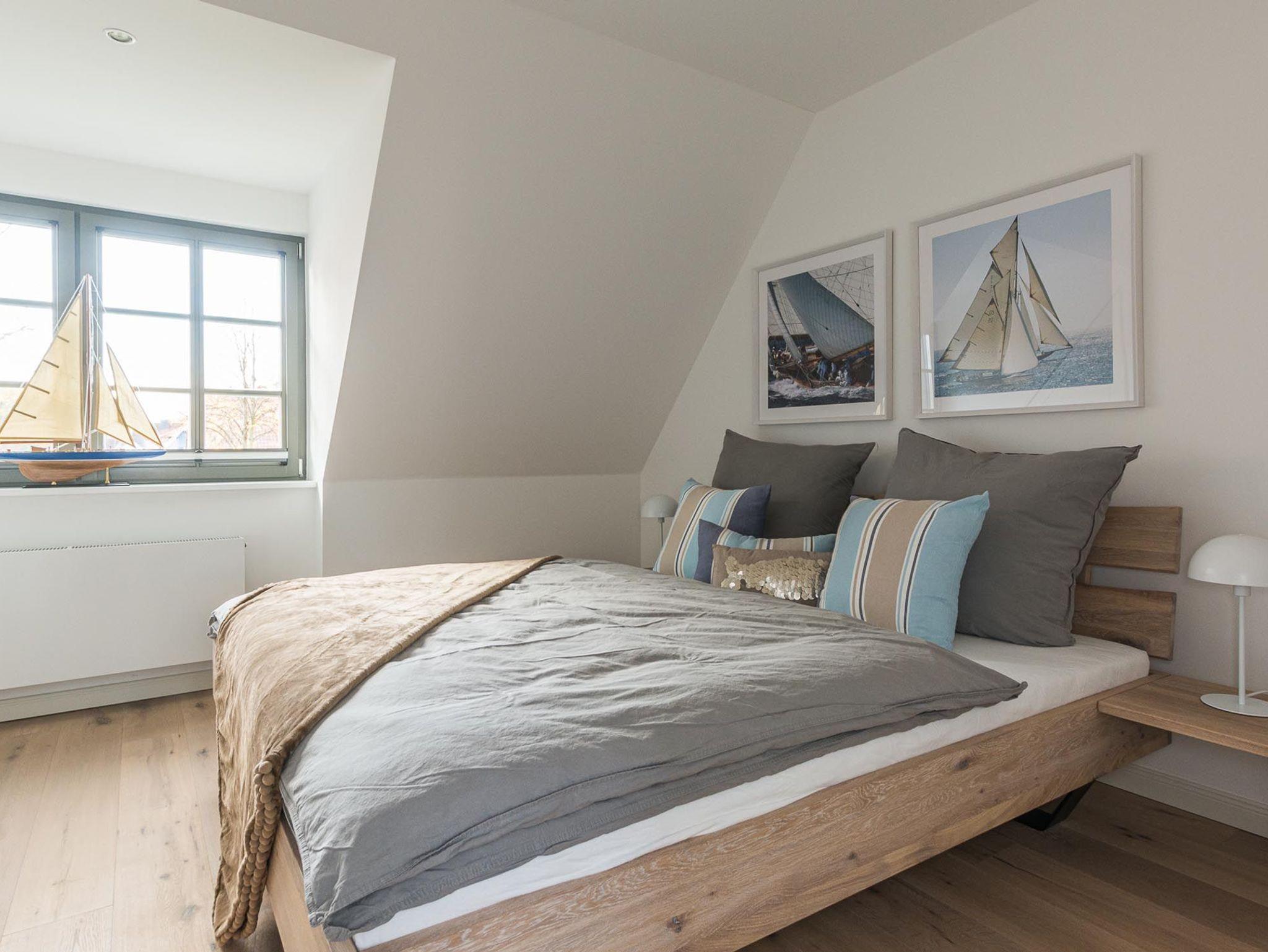 Unter dem Zingster Sternenhimmel befinden sich im Dachgeschoss zwei weitere gemütliche Einzelbetten.