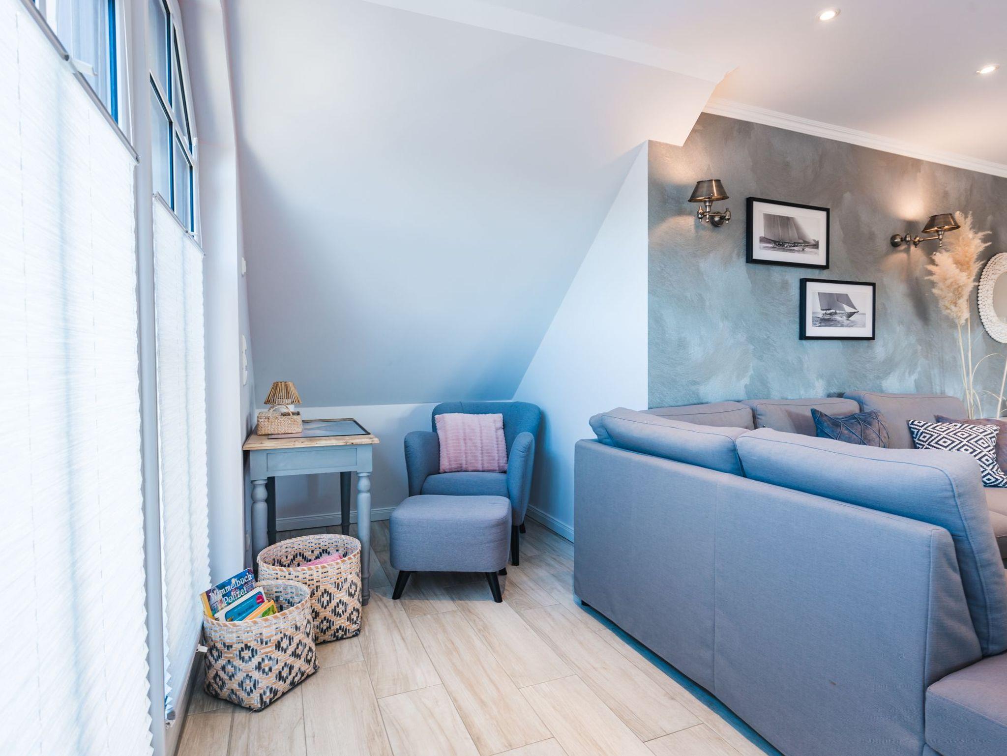 Modernes, lichtdurchflutetes Apartment Koje 7 in Zingst mit Balkon, Strandkorb und moderner Ausstattung für erholsame Tage an der Ostsee.