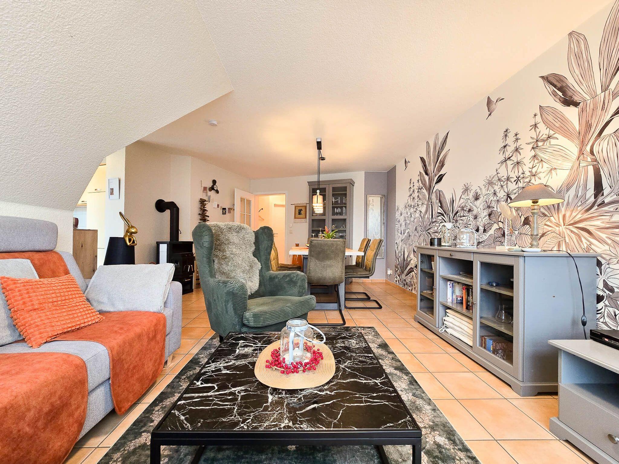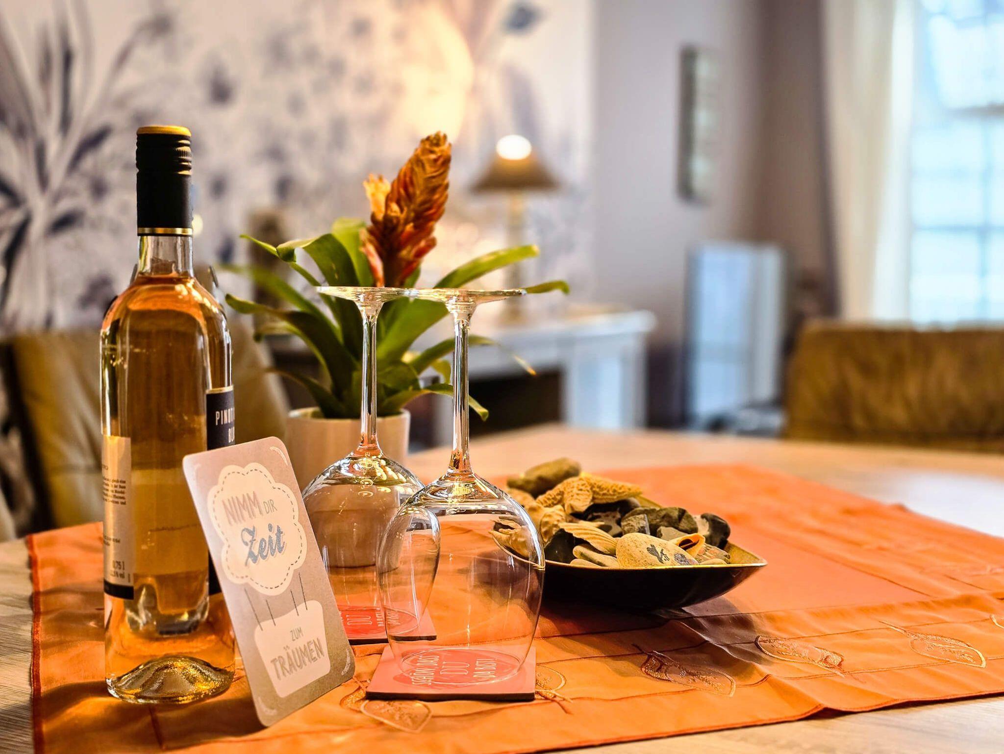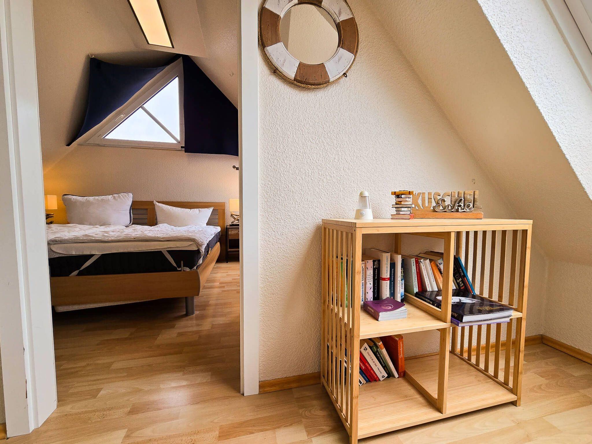Die Ferienwohnung Sehnsuchtsort ist eine helle und großzügige Maisonette-Wohnung im Ober- und Dachgeschoss eines gepflegten Hauses im Gartenweg. Auf ca. 75 m² Wohnfläche bietet sie mit drei separaten Schlafzimmern (zwei im OG, eines im DG) ausreichend Platz für bis zu 6 Personen. Das Herzstück ist der lichtdurchflutete Wohn-Essbereich mit einem behaglichen Kamin und Zugang zum großen Südbalkon. Die moderne Küchenzeile ist voll ausgestattet (Backofen, Geschirrspüler, Mikrowelle). Ein helles Duschbad sowie ein zusätzliches Gäste-WC sorgen für Komfort bei voller Belegung. Die Wohnung ist im 1. OG mit Fußbodenheizung ausgestattet und hundefreundlich gestaltet. WLAN und Smart-TV sind vorhanden.