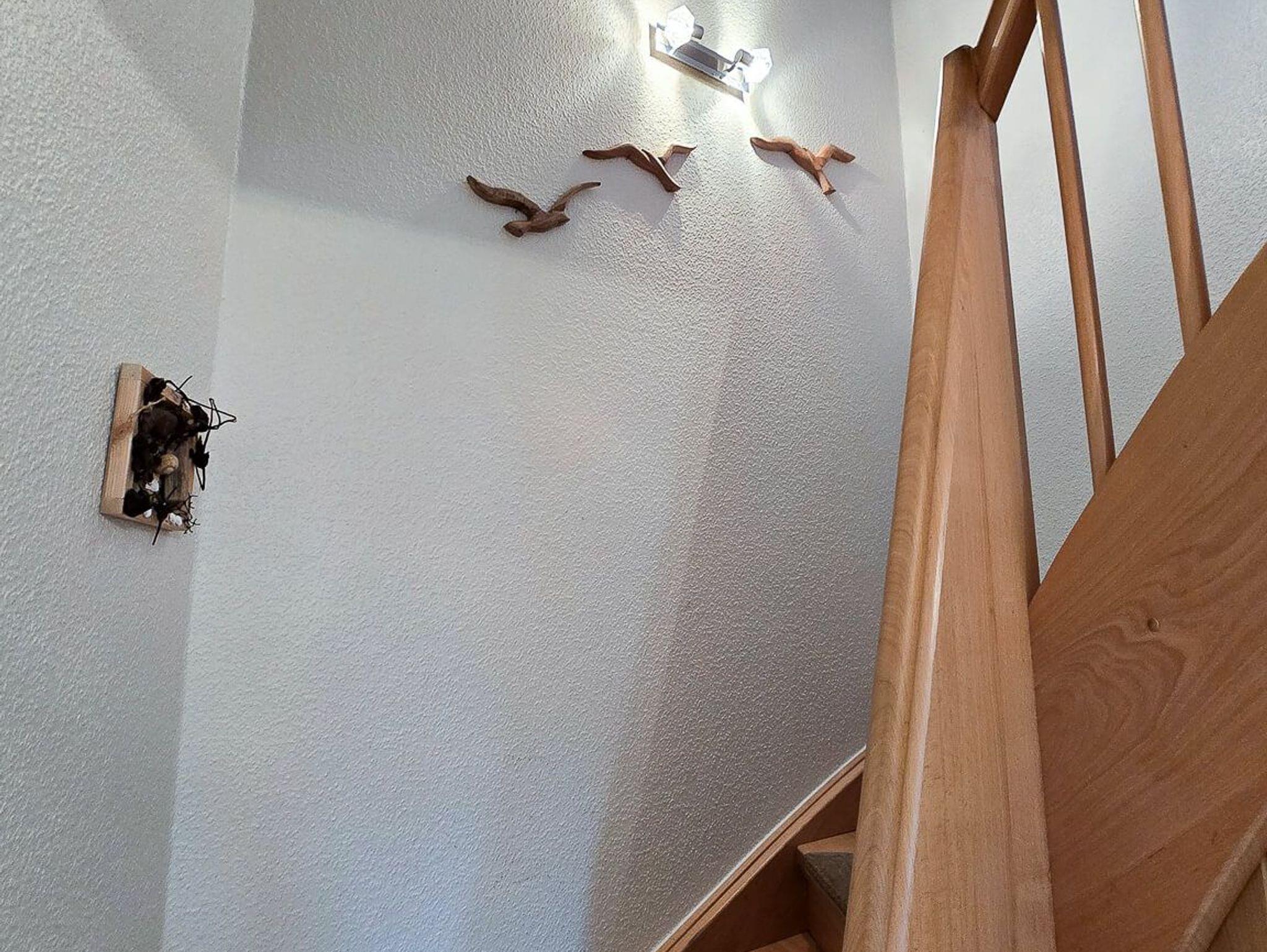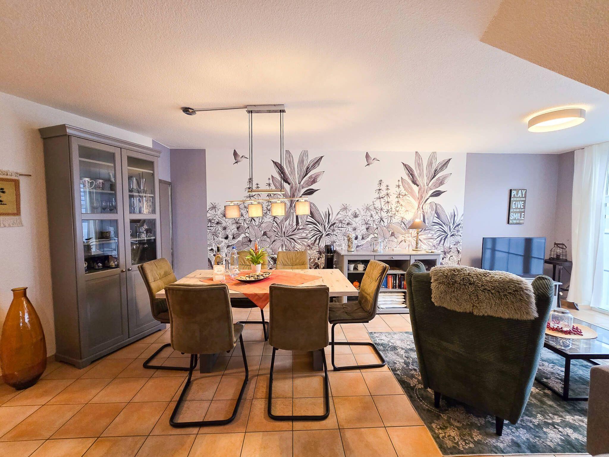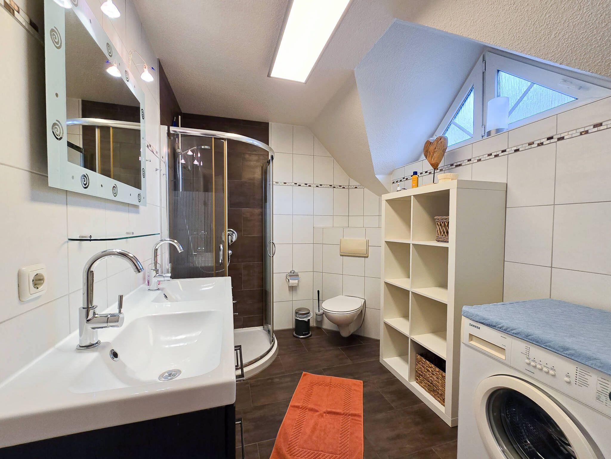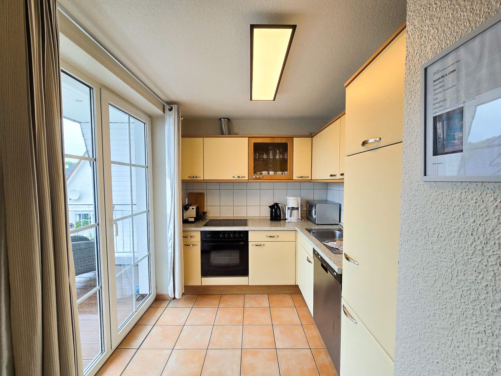 Die Ferienwohnung Sehnsuchtsort ist eine helle und großzügige Maisonette-Wohnung im Ober- und Dachgeschoss eines gepflegten Hauses im Gartenweg. Auf ca. 75 m² Wohnfläche bietet sie mit drei separaten Schlafzimmern (zwei im OG, eines im DG) ausreichend Platz für bis zu 6 Personen. Das Herzstück ist der lichtdurchflutete Wohn-Essbereich mit einem behaglichen Kamin und Zugang zum großen Südbalkon. Die moderne Küchenzeile ist voll ausgestattet (Backofen, Geschirrspüler, Mikrowelle). Ein helles Duschbad sowie ein zusätzliches Gäste-WC sorgen für Komfort bei voller Belegung. Die Wohnung ist im 1. OG mit Fußbodenheizung ausgestattet und hundefreundlich gestaltet. WLAN und Smart-TV sind vorhanden.