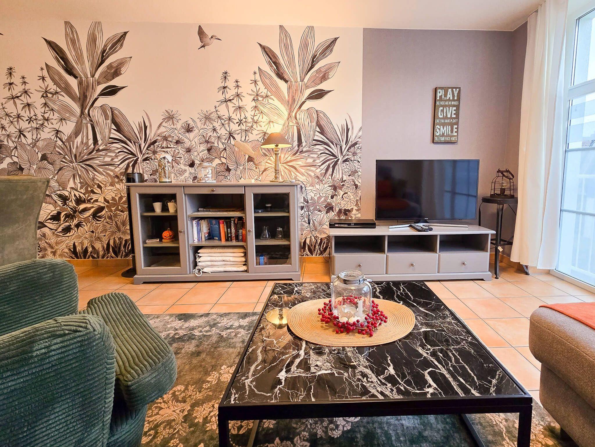 Die helle Maisonettewohnung Sehnsuchtsort in Zingst bietet Komfort, Kamin und Balkon, nur 250 m vom Strand entfernt.