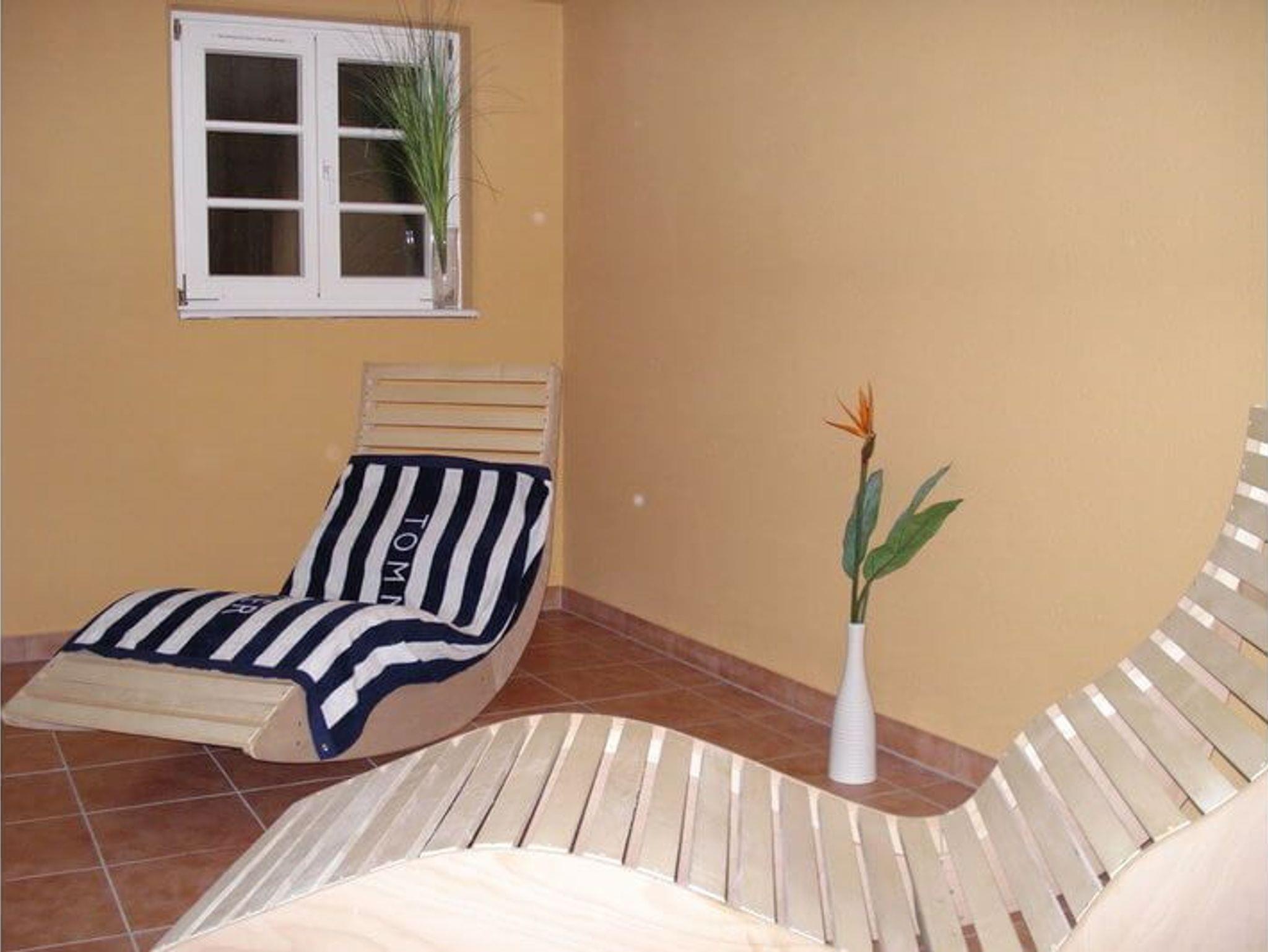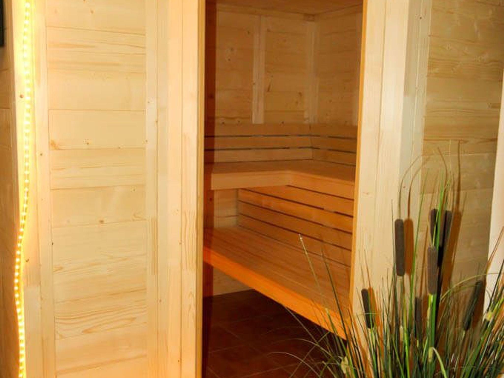 Besondere Highlights sind die hauseigene Sauna mit Ruhebereich sowie der Kamin, der auch in der kühleren Jahreszeit für eine angenehme Atmosphäre sorgt. Die Terrasse mit angrenzender Grünfläche bietet zusätzlichen Raum zur Erholung im Freien.