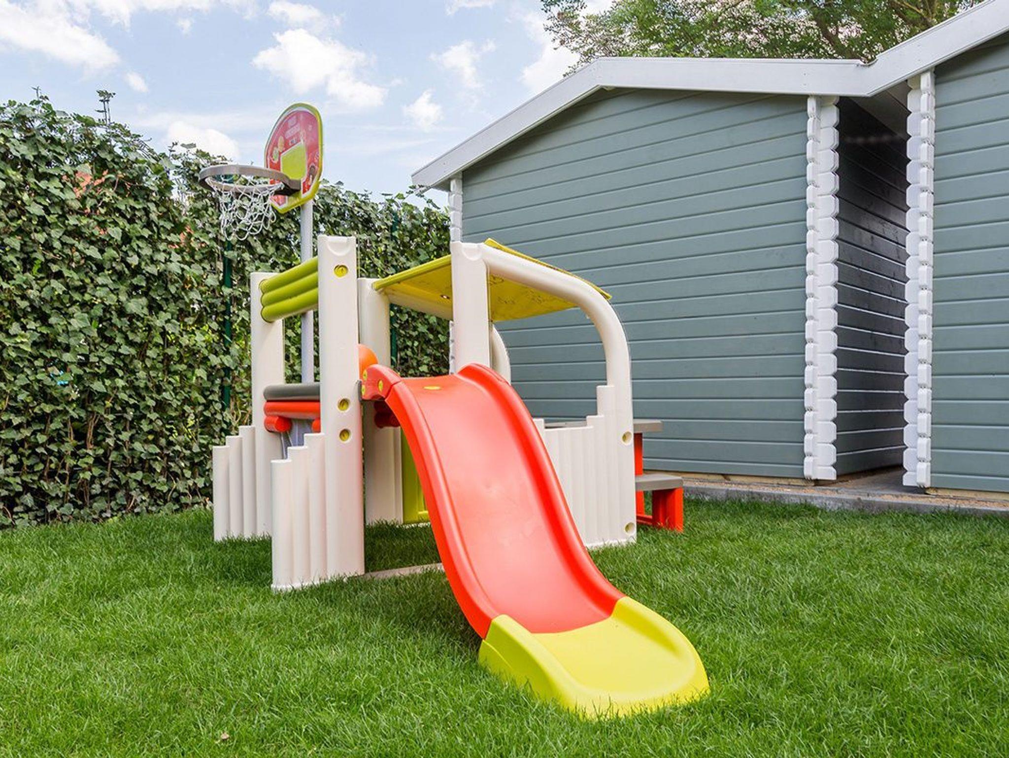 Der eingezäunte Garten ist ein kleines Paradies für Familien. Die jüngsten Gäste dürfen sich auf ein Smoby-Kinderspielhaus und eine Spielküche freuen. Selbstverständlich stellen wir Ihnen Kinderbett und Hochstuhl kostenlos zur Verfügung. Während die Kleinen spielen, können die Großen auf der Terrasse entspannen und den Tag in aller Ruhe ausklingen lassen.