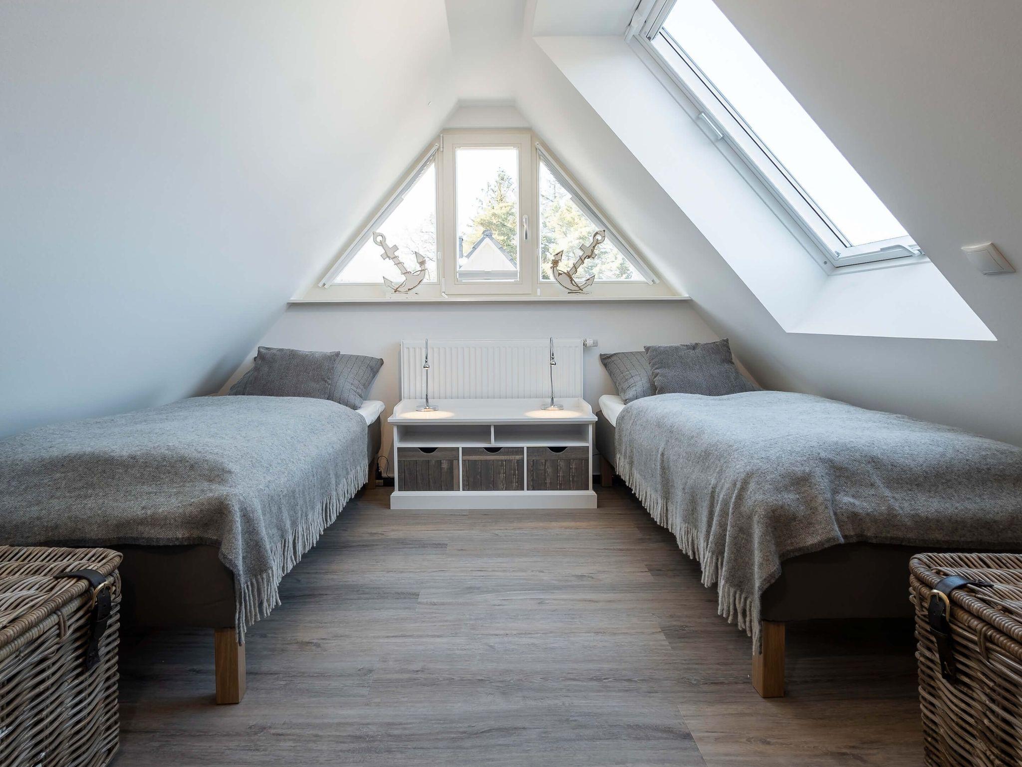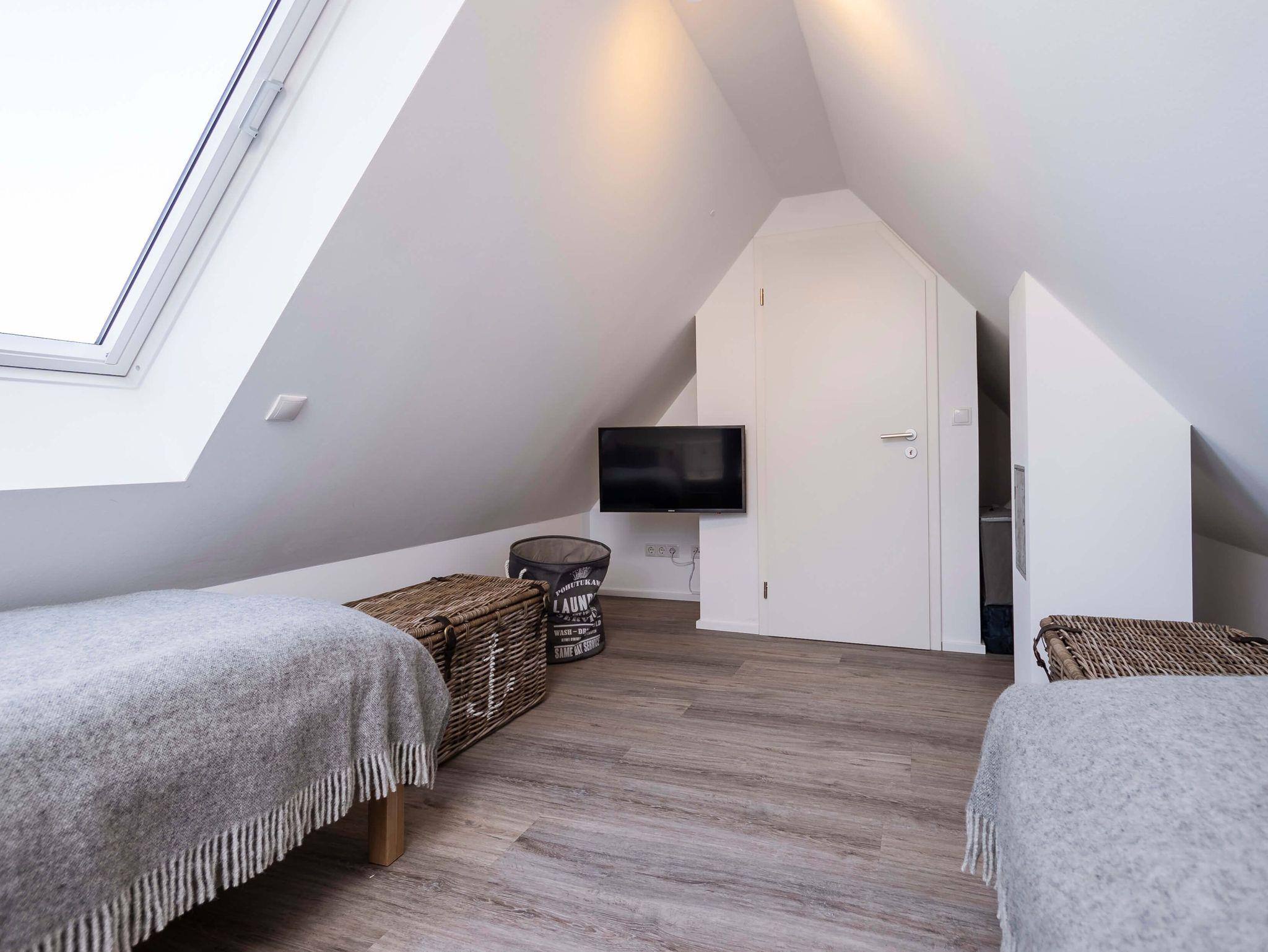 Der ausgebaute Spitzboden verfügt über zwei weitere Einzelbetten und einen Flatscreen TV und bietet eine gemütliche Atmosphäre.