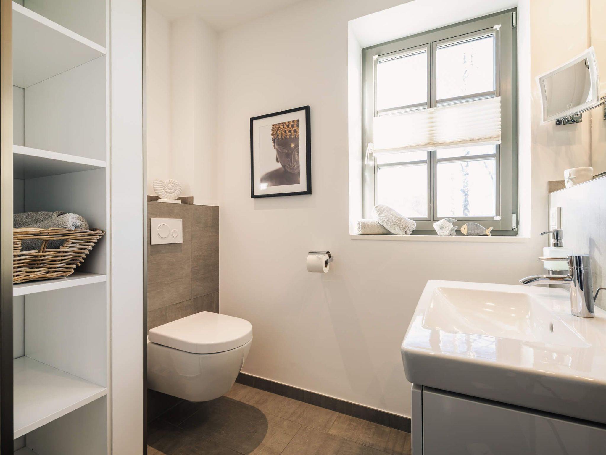 • Badezimmer: Zwei moderne Badezimmer (eines im EG, eines im 1. OG), jeweils ausgestattet mit einer ebenerdigen Dusche.