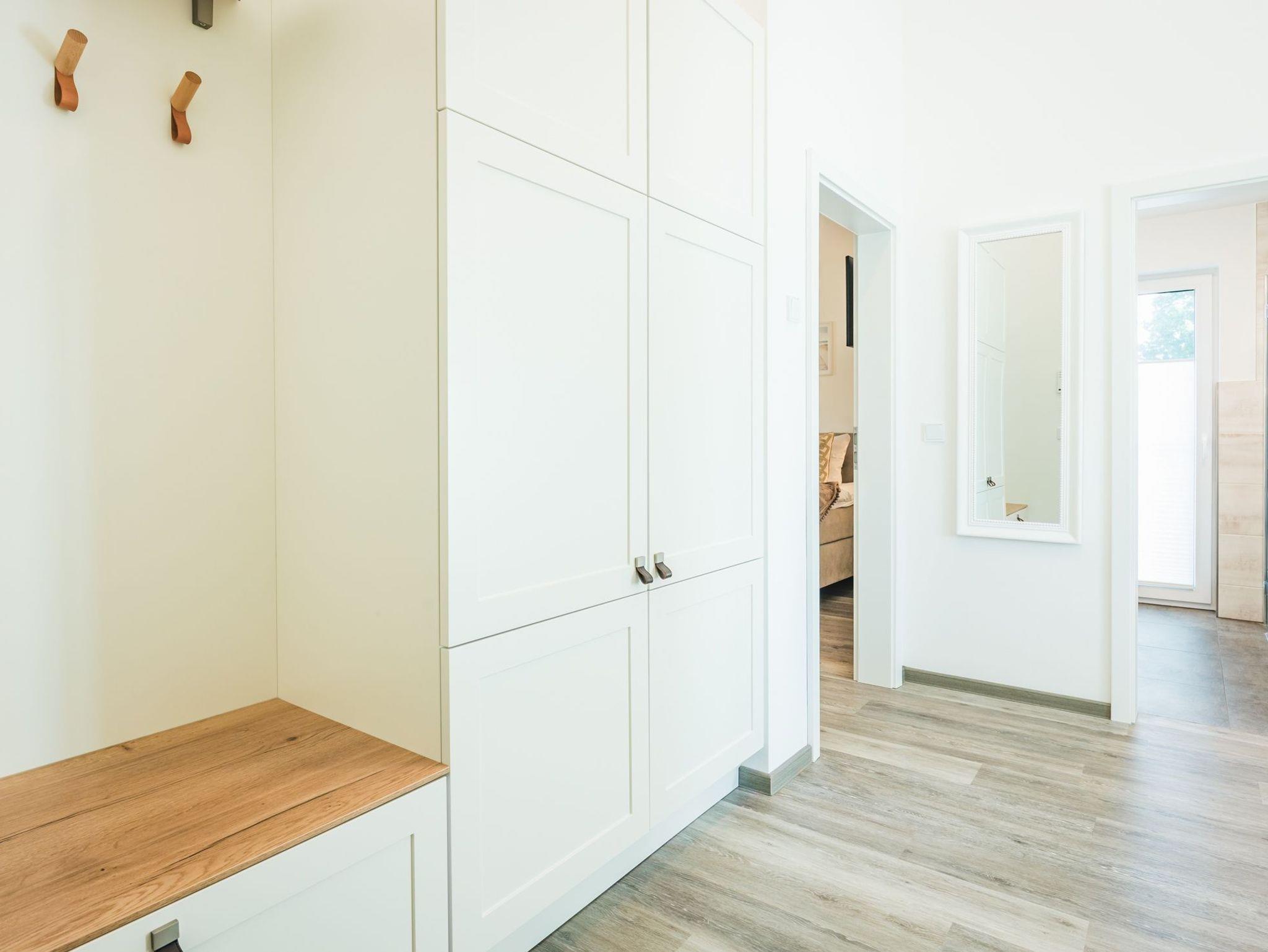 Betreten Sie die Wohnung und gelangen vom Flur direkt in den wunderschönen Wohn- und Essbereich. Der Wohnbereich besticht durch eine große Sofaliege. Die Küche ist optimal auf die Wohnung angepasst und lässt das Herz jedes Hobbykoches höher schlagen. Auch das Badezimmer wird ihnen gut gefallen, abgestimmte Naturtöne und eine ebenerdige Dusche runden den hohen Komfort der Wohnung ab. Der schöne Balkon lädt zum verweilen und entspannen ein, genießen sie traumhafte Sonnenuntergänge über den Dächern von Zingst.