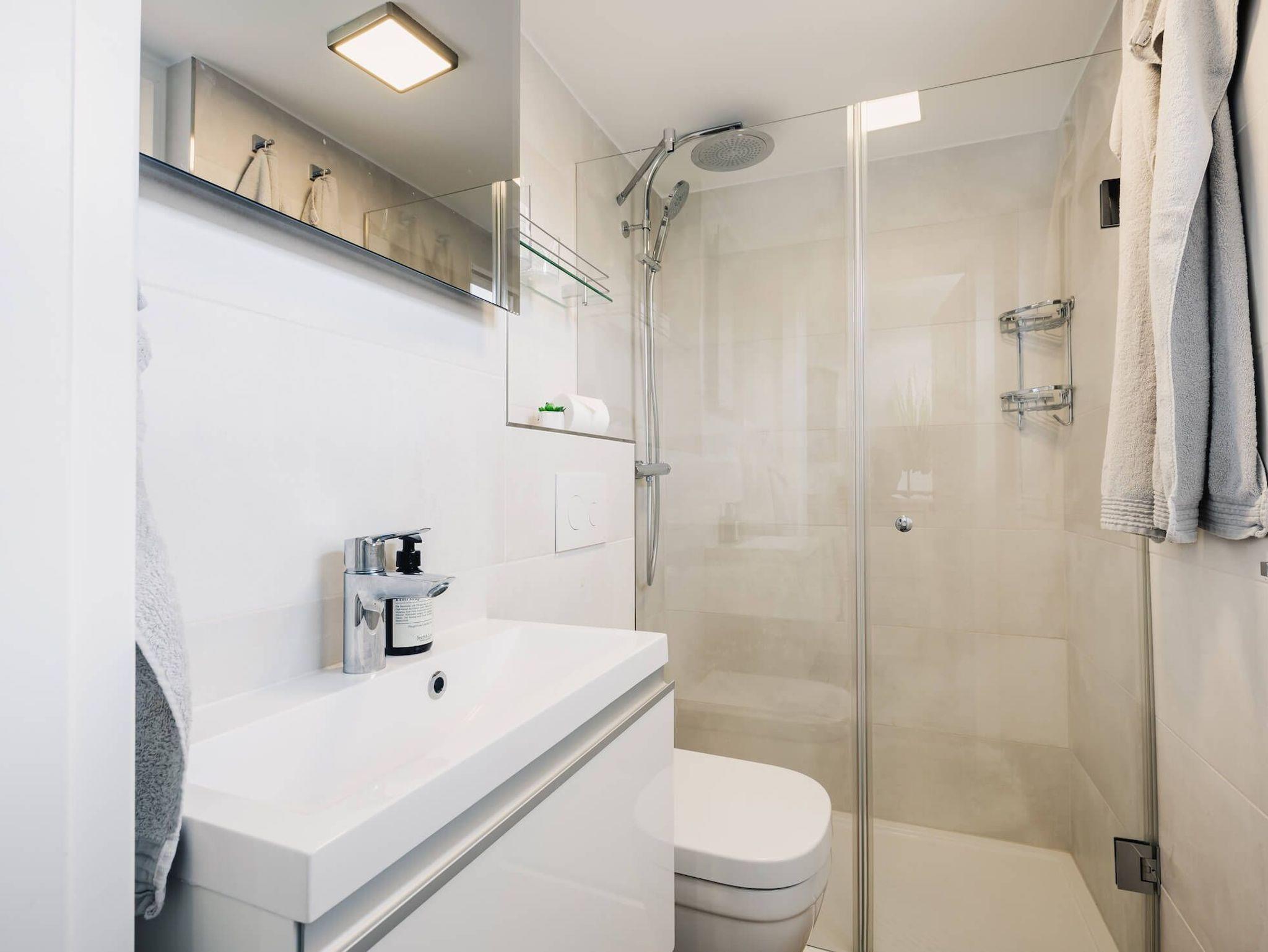 • Modernes Bad mit Dusche:Für eine erfrischende Auszeit.