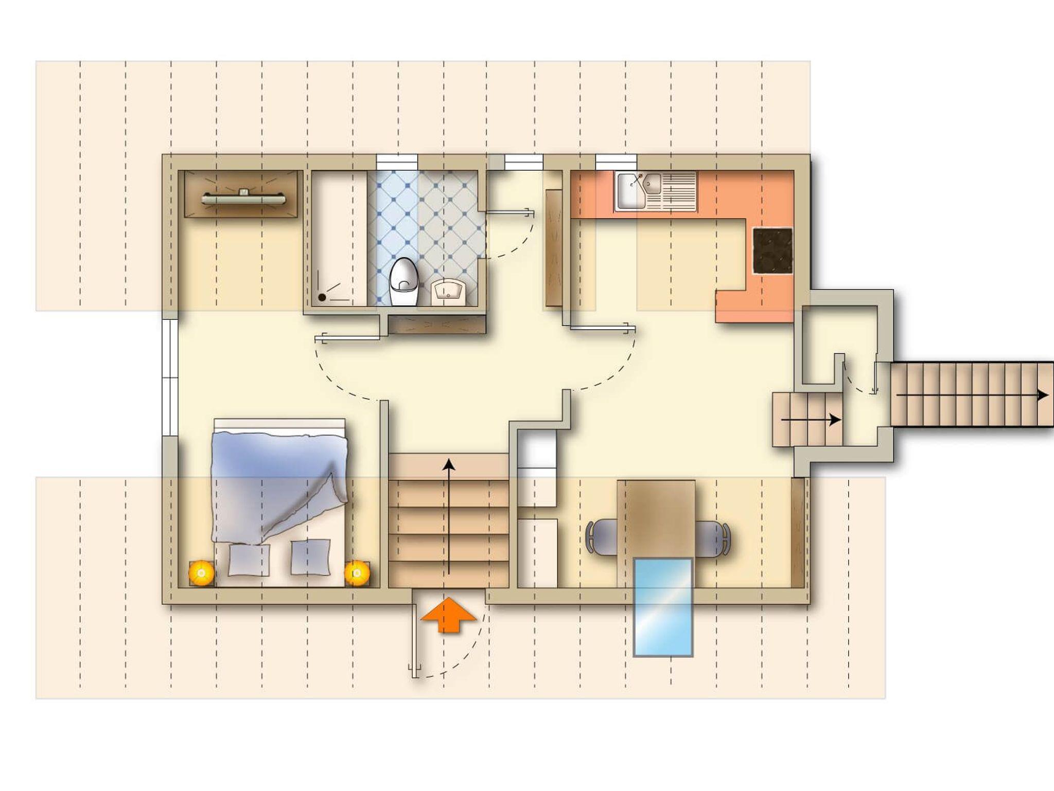 Diese einzigartige Ferienwohnung erstreckt sich über zwei Ebenen und bietet Ihnen ein Höchstmaß an Privatsphäre und Gemütlichkeit.